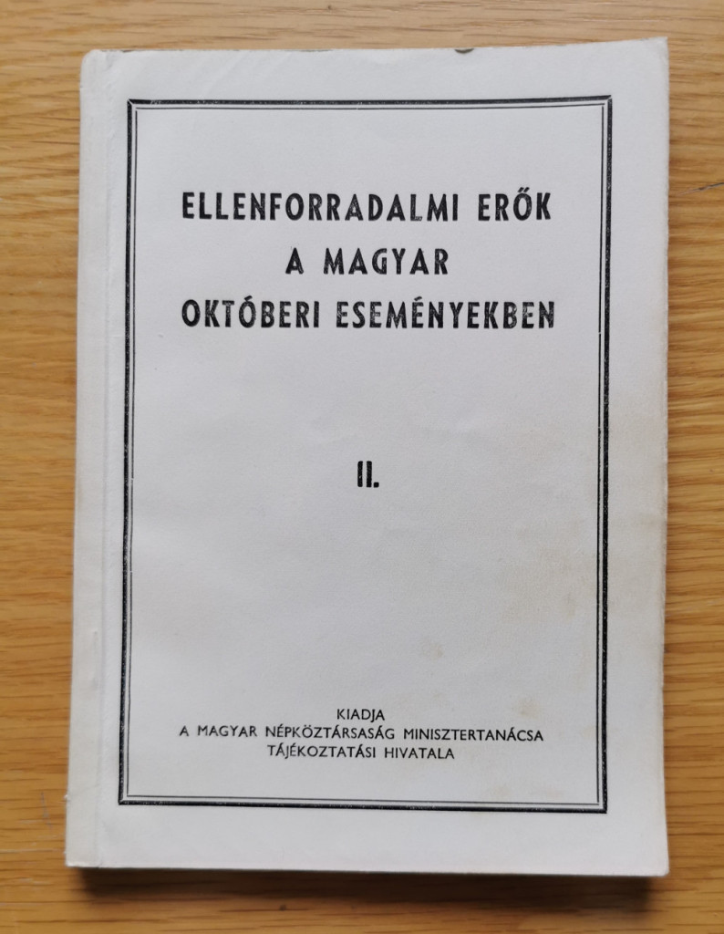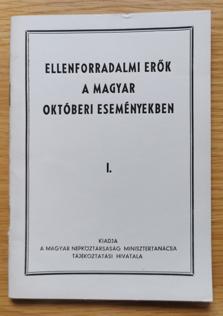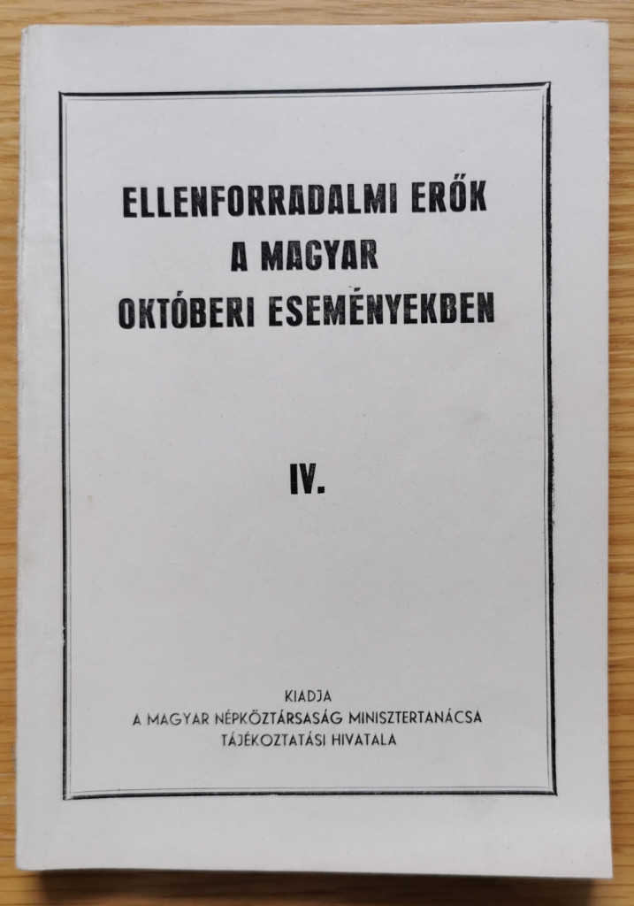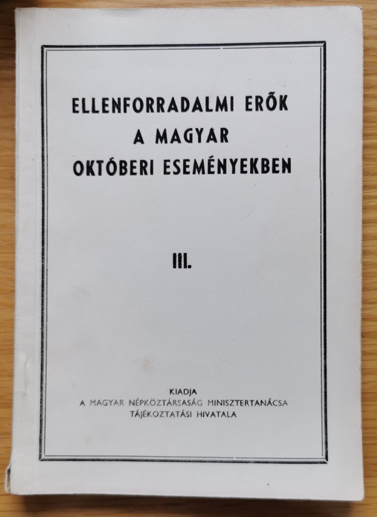 Az „Ellenforradalmi erők a magyar októberi eseményekben" című kiadvány első három kötete behatóan tájékoztatta az olvasót a Magyar Népköztársaság államrendje ellen irányuló 1956 őszi ellenforradalmi támadás részleteiről.