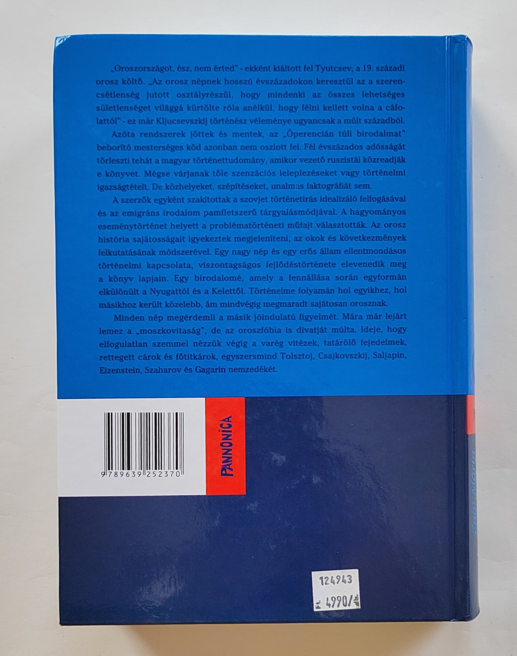 Azóta rendszerek jöttek és mentek, az "Óperencián túli birodalmat" beborító mesterséges köd azonban nem oszlott fel. Fél évszázados adósságát törleszti tehát a magyar történettudomány, amikor vezető ruszistái közreadják e könyvet. Mégse várjanak tőle szenzációs elleplezéseket vagy történelmi igazságtételt. De közhelyeket, szépítéseket, unalmas faktográfiát sem.