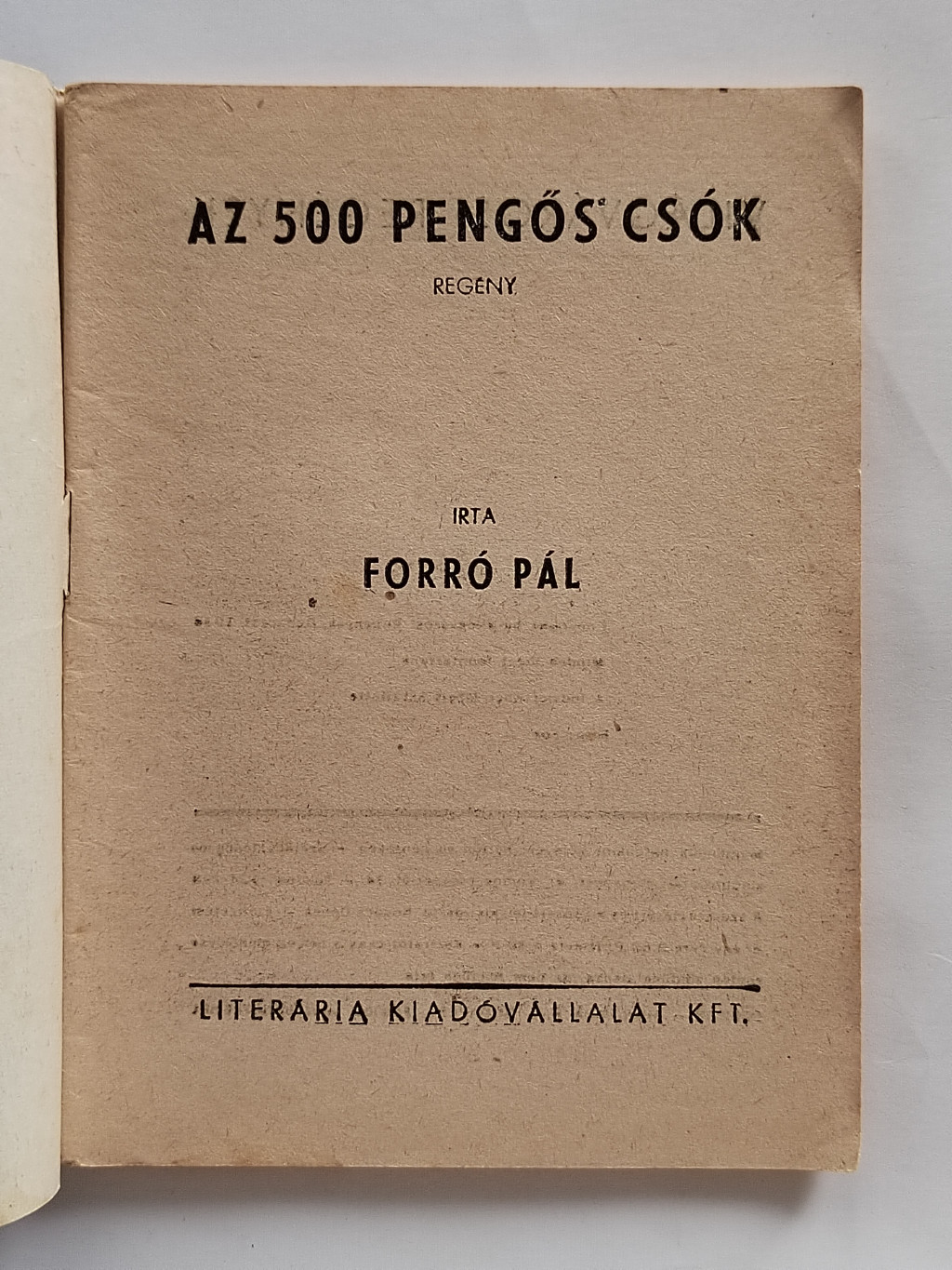 Forró Pál: Az 500 pengős csók (Világvárosi Regények 538.)