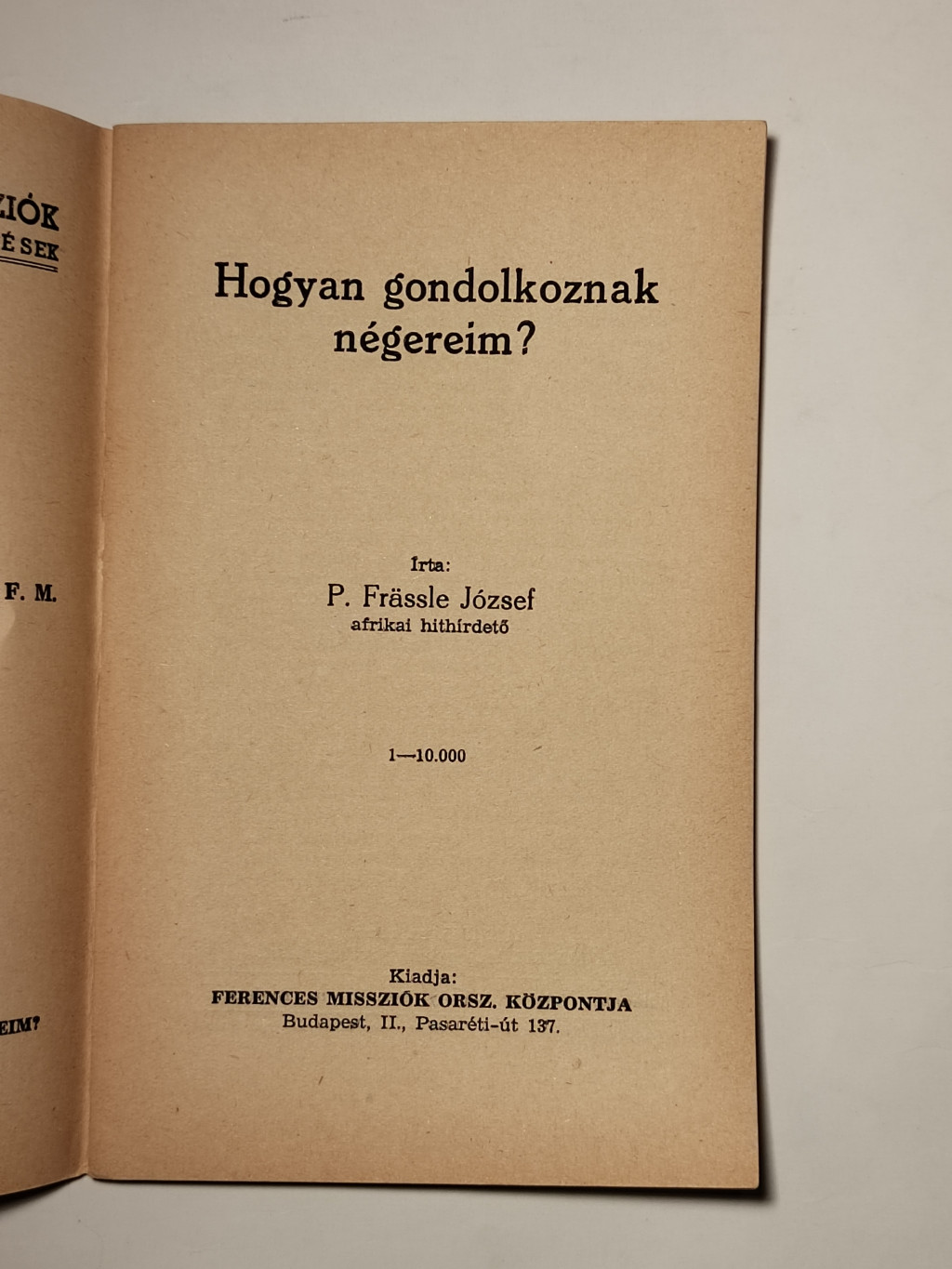 Frässle József: Hogyan gondolkoznak négereim? (Ferences Világmissziók 41.)