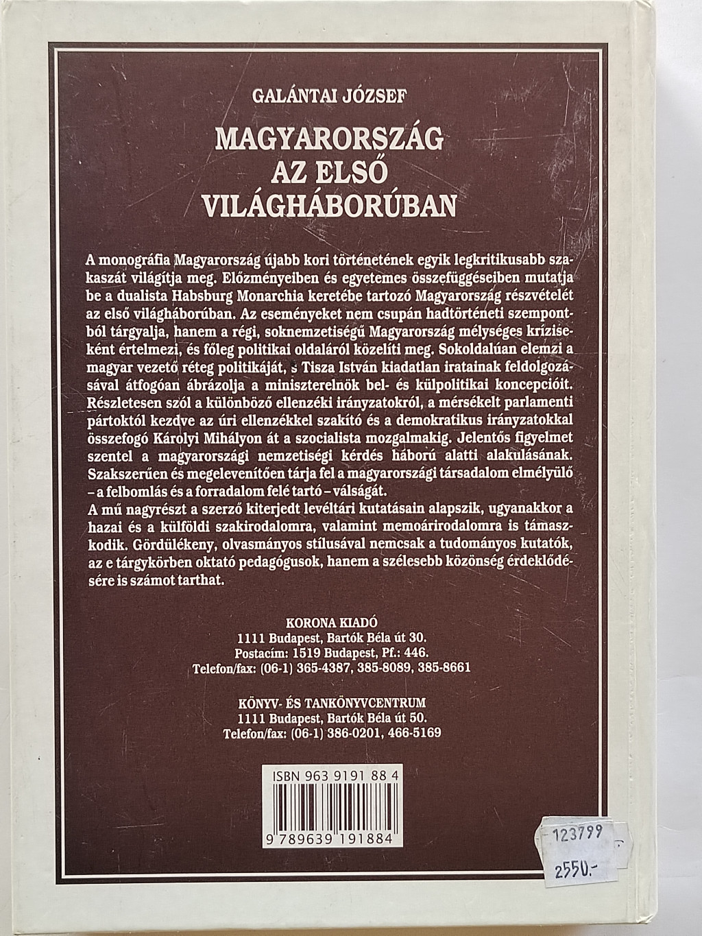 A monográfia Magyarország újabb kori történetének egyik legkritikusabb szakaszát világítja meg. Előzményeiben és egyetemes összefüggéseiben mutatja be a dualista Habsburg Monarchia keretébe tartozó Magyarország részvételét az első világháborúban. Az eseményeket nem csupán hadtörténeti szempontból tárgyalja, hanem a régi, soknemzetiségű Magyarország mélységes kríziseként értelmezi, és főleg politikai oldaláról közelíti meg. Sokoldalúan elemzi a magyar vezető réteg politikáját, s Tisza István kiadatlan iratainak feldolgozásával átfogóan ábrázolja a miniszterelnök bel- és külpolitikai koncepcióit. Részletesen szól a különböző ellenzéki irányzatokról, a mérsékelt parlamenti pártoktól kezdve az úri ellenzékkel szakító és a demokratikus irányzatokkal összefogó Károlyi Mihályon át a szocialista mozgalmakig. Jelentős figyelmet szentel a magyarországi nemzetiségi kérdés háború alatti alakulásának. Szakszerűen és megelevenítően tárja fel a magyarországi társadalom elmélyülő – a felbomlás és a forradalom felé tartó – válságát.