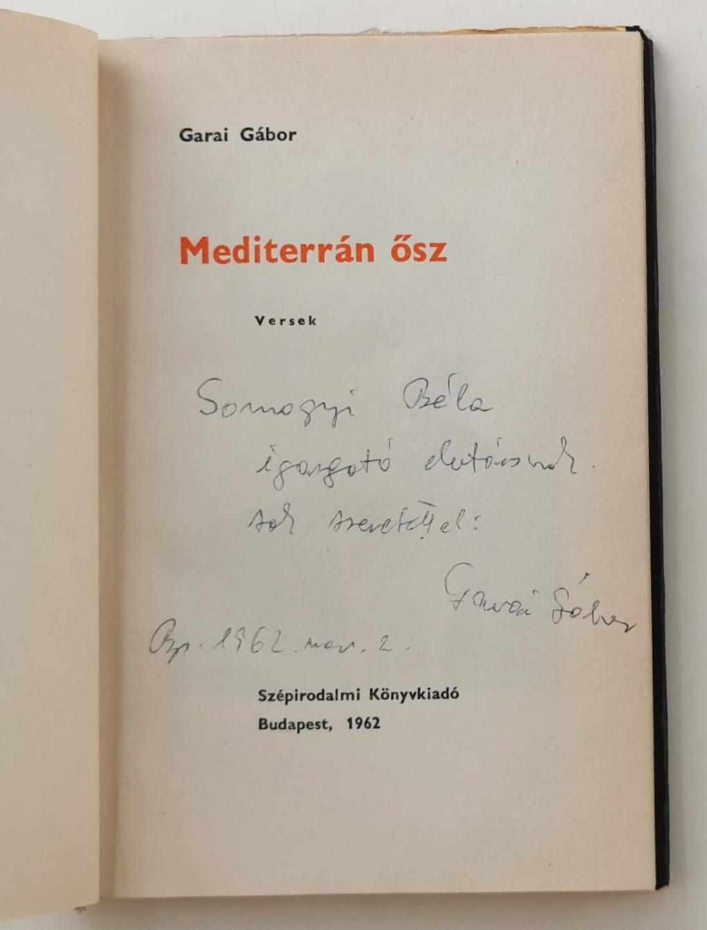 Garai Gábor negyedik verseskötete jut el most az olvasóhoz. A versek művészi jelentőségét az a nagyfokú közösségi élmény adja meg, mely már előző kötetét is áthatotta: a költő ráébredt arra, hogy micsoda erőt, energiát, erkölcsi pátoszt jelent az emberiség részének tekinteni önmagát, hisz az emberiséget e korban nagyszerű tettek dicsérik.