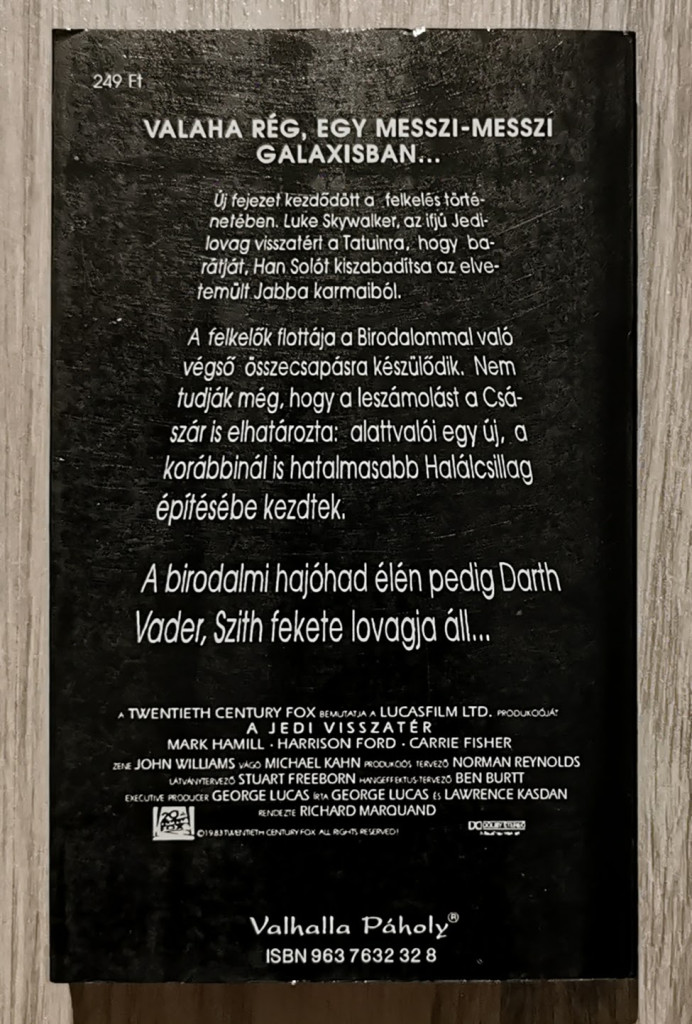 Nehéz ​idők járnak a Lázadó Szövetségre… A karbonittömbbe fagyott Han Solo a rettegett csempészfejedelem és gengszter, Jabba, a hutt kezére jut. Luke Skywalker és Leia hercegnő egy kockázatos küldetés keretében beszivárognak a kegyetlen bűnöző tatuini sivatagi palotájába, hogy bármi áron megmentsék. Ezzel egy időben Darth Vader és Palpatine császár egy új és még erősebb Halálcsillag építésén dolgozik, hogy egyszer s mindenkorra elpusztítsák a Lázadó Szövetséget. A Birodalom a félig elkészült űrállomás védelme érdekében az addig érintetlen Endor bolygón épít pajzsgenerátort, amely a Halálcsillag egyetlen gyenge pontja. A Lázadók végső esélye, ha egyesítik flottáikat és létrehoznak egy gigantikus armadát… hogy egy hősies, utolsó leheletig tartó harcot vívjanak a galaxis leghalálosabb fenyegetése ellen. A Csillagok háborúja 1976-ban indult útjára, és a későbbi mozifilmek a sci-fi legnépszerűbb és legnagyobb hatású alkotásává tették, sikere évtizedeken átívelve, mindmáig töretlen. Az olvasó az eredeti regény újra szerkesztett, napjaink nyelvezetéhez és az azóta hatalmas méretűre nőtt Star Wars univerzumhoz pontosabban illeszkedő kiadását tartja a kezében.