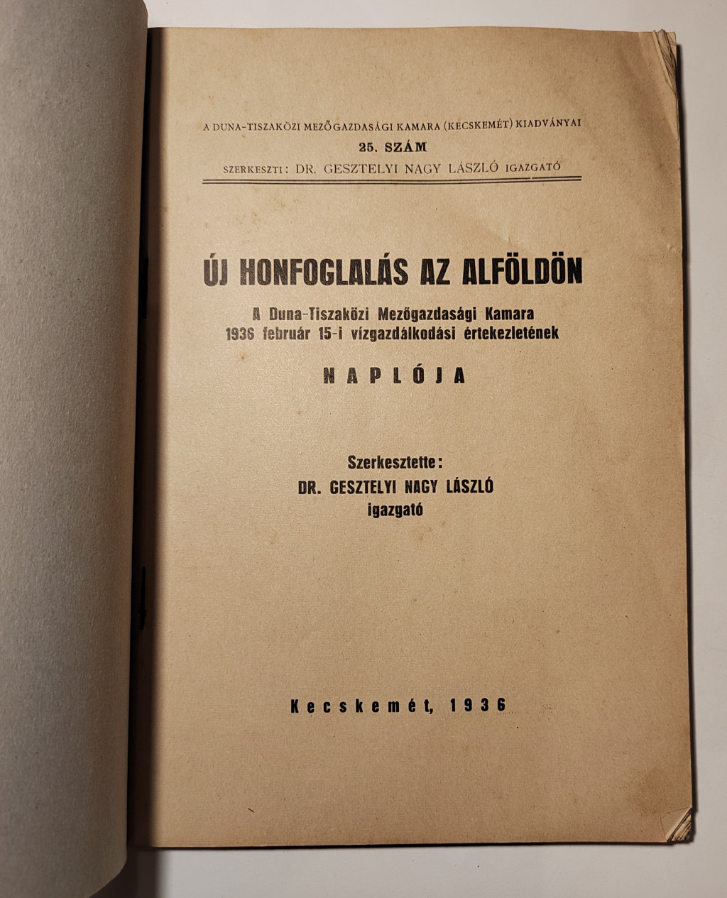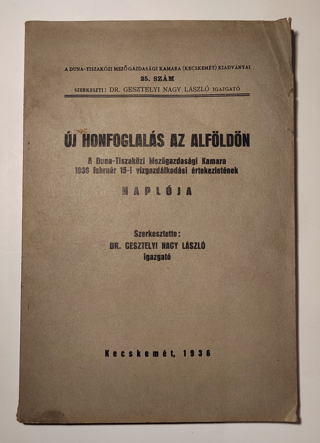 A Duna-Tiszaközi Mezőgazdasági Kamara 1936 február 15-i vízgazdálkodási értekezletének naplója