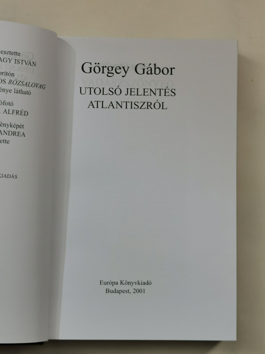 Évtizedes készülődés után kezdtem el 1987-ben regényciklusom – de most már szívesebben nevezem nagyregénynek – megírását. Krónikáját annak a szenvedéstörténetnek, mely a harmincas évektől az ezredfordulóig lezajlott. Hősöm, Topporczy Ádám és családja hányatott sorsának elbeszélésével meg akartam örökíteni azt az elsüllyedt Magyarországot, mely a tenger mélyéről Atlantiszként ma is küldi üzeneteit. E halványuló rádiójelek részben egy végképp idejétmúlt, valóban elsüllyedésre érett világ rekvizitumairól adnak hírt. De akad köztük fontos híradás olyan értékekről, tradíciókról, erkölcsiségről is, mely egy láthatatlan, maradandó, magasabb haza történelmi öröksége. Helyzetem és életkorom szinte predesztinált e regény megírására. Mert gyerekkoromból még vannak eleven emlékeim e korszerűtlen, feudális úri világ hamis, de mégis megragadó szépségéről. És felnőtt fejjel, tragikus díszletek között, átéltem az elsüllyedését is. Amikor írni kezdtem, nem gondoltam, hogy nem várt ráadásként e tizenkét éven át rótt regényem sajátossága (és a történelem ajándéka) lesz, hogy életrajzomba és művembe beleszövi az idő a második Atlantiszt, a szovjet birodalom elsüllyedését is. Dokumentumokkal és önéletrajzi elemekkel tarkítva a tiszta fikciót, a regény szuverén világát, egybeszőve a gyötrelmeset és a gyönyörűt, költői jelentést akartam írni e képtelen korról. Sosem feledkezve meg a mindenkori irodalmi divatokról független elbeszélés, az igazi mesélés, az érdekfeszítő történetlebonyolítás ősi öröméről.