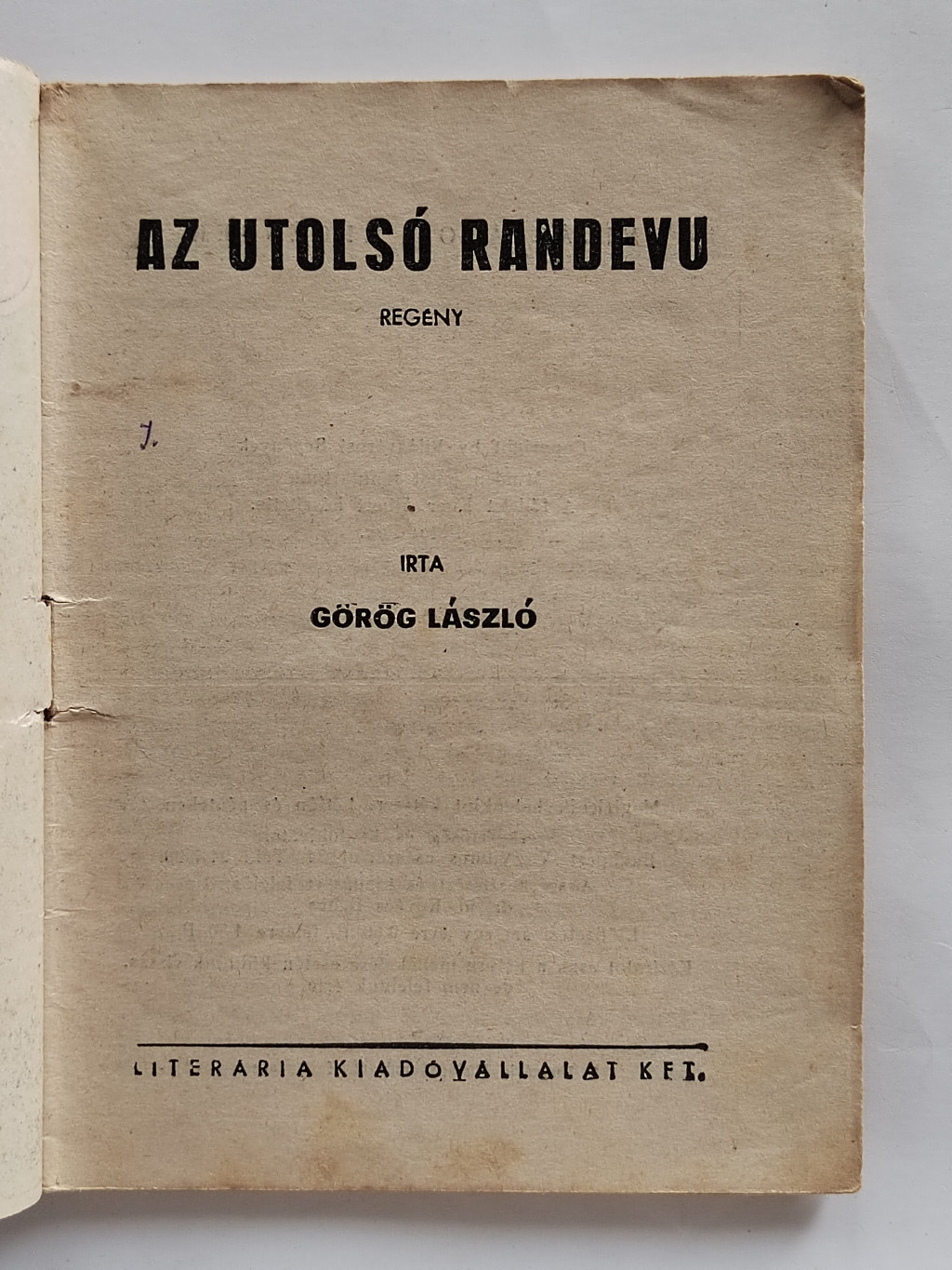 Görög László: Az utolsó randevú (Világvárosi Regények 324.)