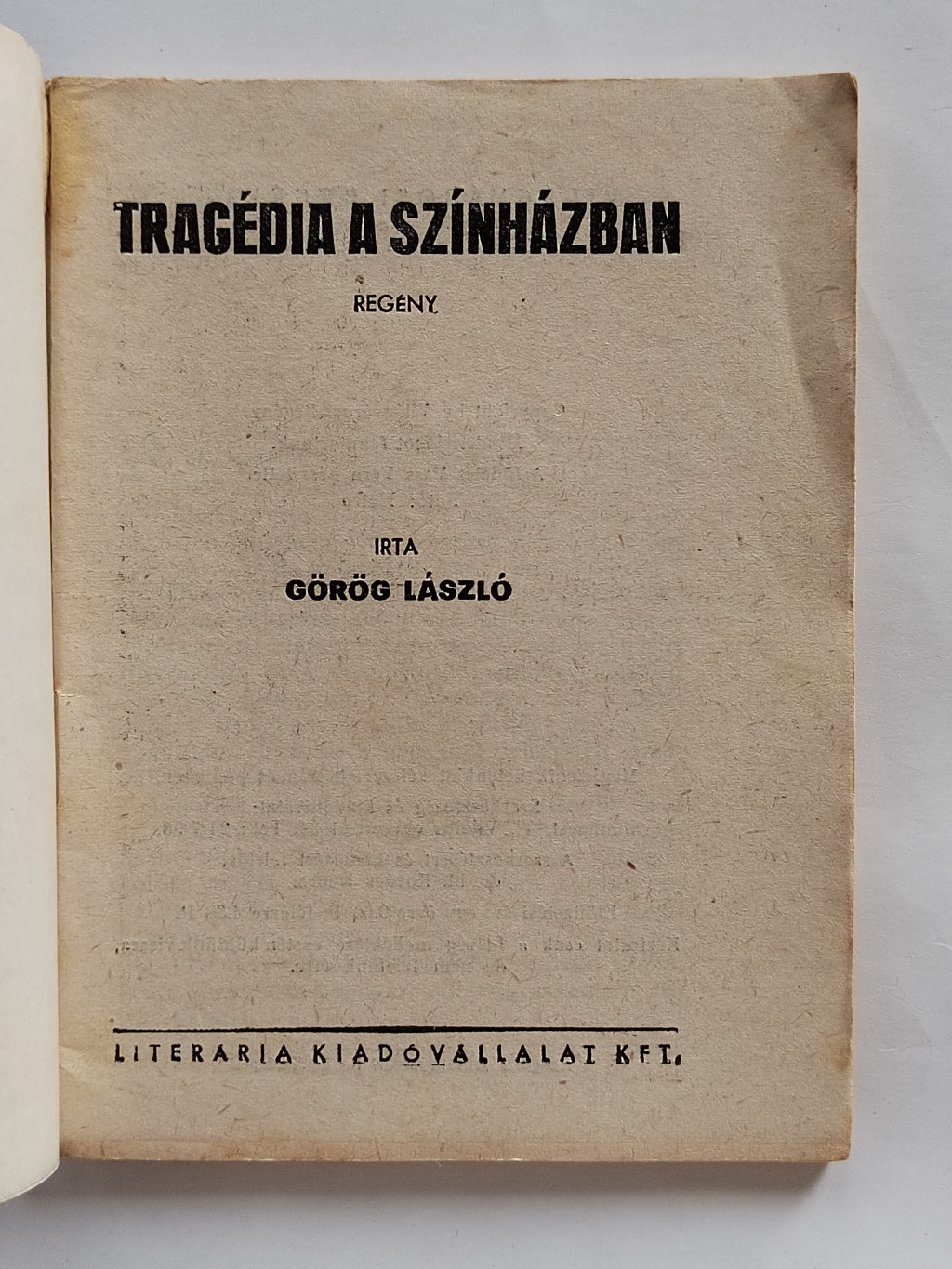 Görög László: Tragédia a színházban (Világvárosi Regények 290.)