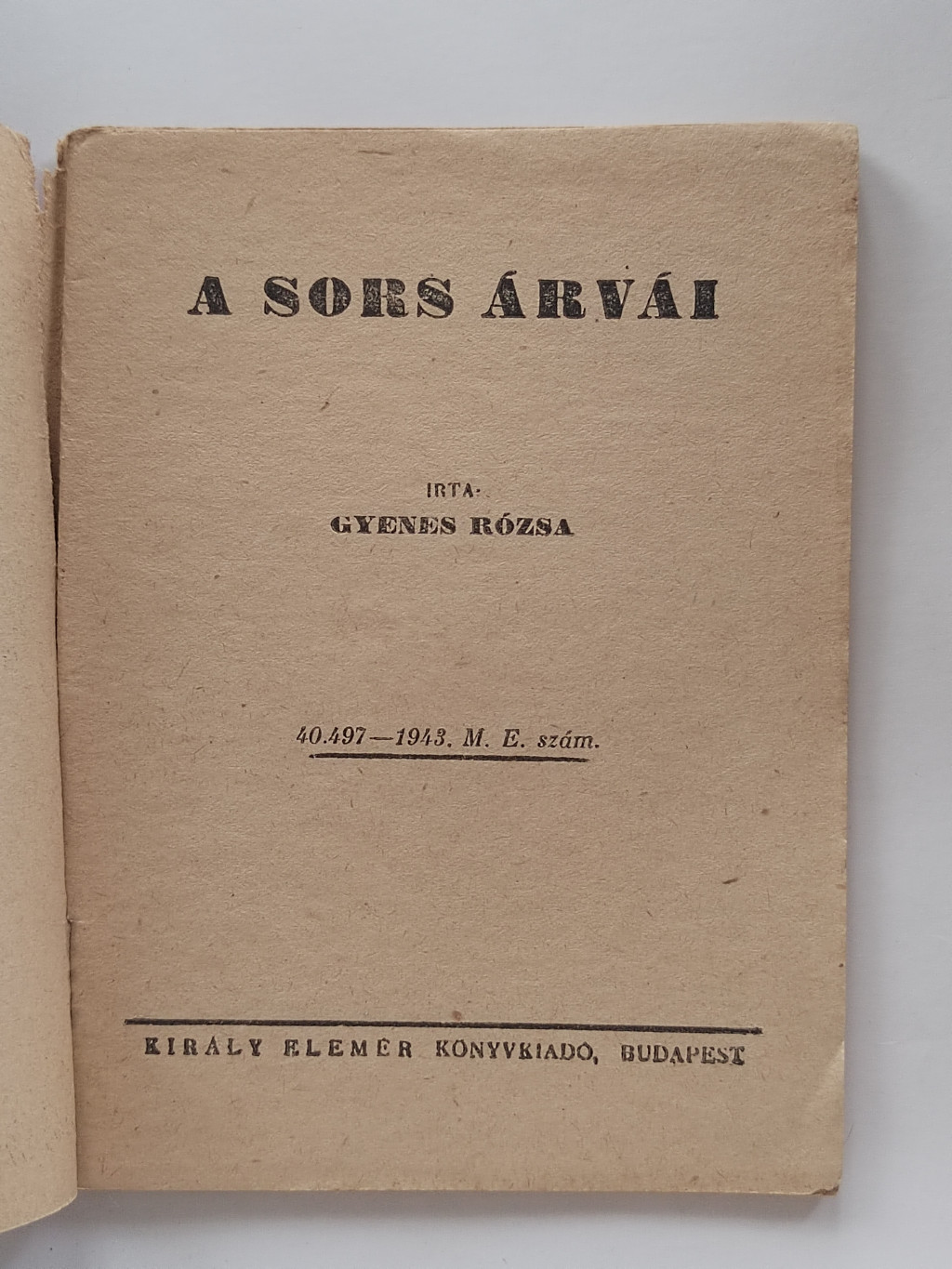 Gyenes Rózsa: A sors árvái (Király Regény)