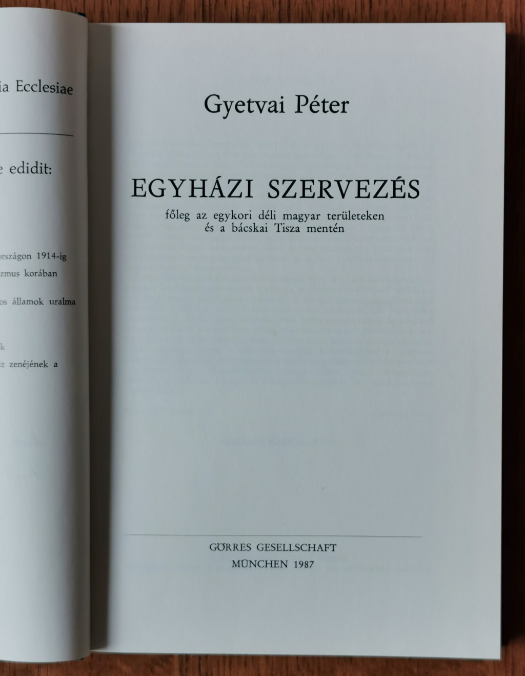 Az itt közreadott munka Dr. Gyetvai Péter kalocsai főegyházmegyés pap több mint negyven éves kutatómunkájának gyümölcse. Egyház- és településtörténeti munka, melyet történészek, egyháztörténészek, néprajz- és falukutatók egyaránt nagy haszonnal forgathatnak. A szerzőnek, aki Grősz József érsek irodaigazgatója volt s így a főpap perében érintett személy, az ötvenes évek elején el kellett hagynia Magyarországot. Külföldön azonban jól tudta hasznosítani a kalocsai szolgálat alatt végzett kutatási eredményeit, melyeket főként az úgynevezett tiszai Korona-kerület, területileg a Szegedtől Titelig terjedő tizenegy színmagyar község településtörténetének és történeti fejlődésének szentelt. Ennek monumentális kézirata még kiadásra vár — írta Adriányi Gábor 1987-ben. Kutatásai során természetesen nem hagyta figyelmen kívül az egyházi vonatkozásokat sem: így született meg a jelen mű kézirata. Kiadására azonban csak jóval később, 1987-ben, Münchenben került sor, a híres, Adriányi Gábor professzor által szerkesztett, keresztény értelmiségi körökben Magyarországon is ismert Dissertationes Hungaricae ex historia Ecclesiae sorozat VII. köteteként.
