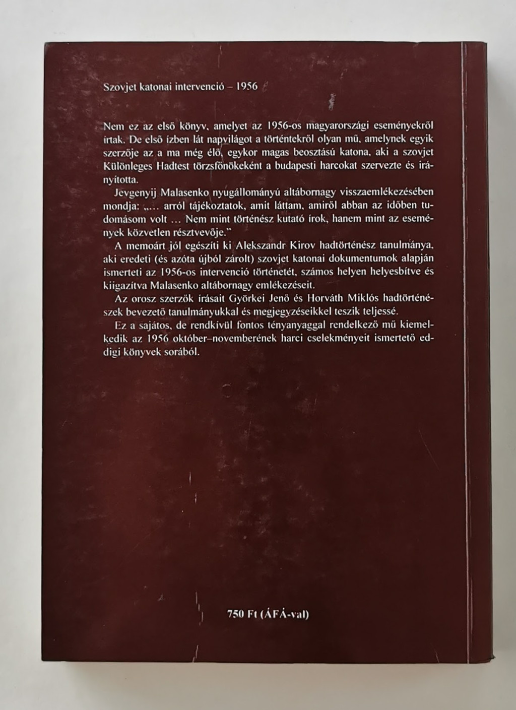 A memoárt jól egészíti ki Alekszandr Kirov hadtörténész tanulmánya, aki eredeti (és azóta újból zárolt) szovjet katonai dokumentumok alapján ismerteti az 1956-os intervenció történetét, számos helyen helyesbítve és kiigazítva Malasenko altábornagy emlékezéseit.