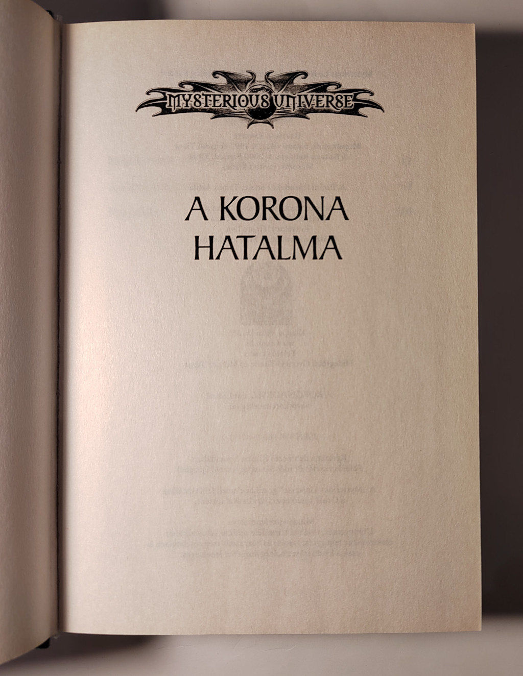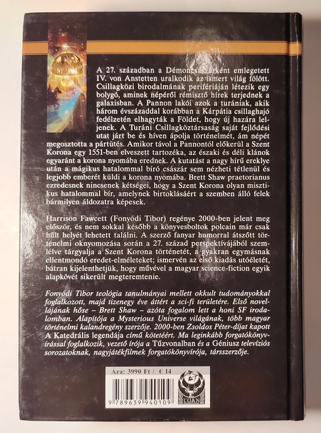 Harrison Fawcett (Fonyódi Tibor) regénye 2000-ben jelent meg először, és nem sokkal később a könyvesboltok polcain már csak hűlt helyét lehetett találni. A szerző fanyar humorral átszőtt történelmi oknyomozása során a 27. század perspektívájából szemlélve tárgyalja a Szent Korona történetét, a gyakran egymásnak ellentmondó eredet-elméleteket; ismervén az első kiadás utóéletét, bátran kijelenthetjük, hogy művével a magyar science-fiction egyik alapkövét sikerült megteremtenie.