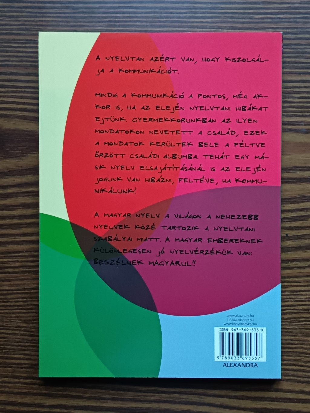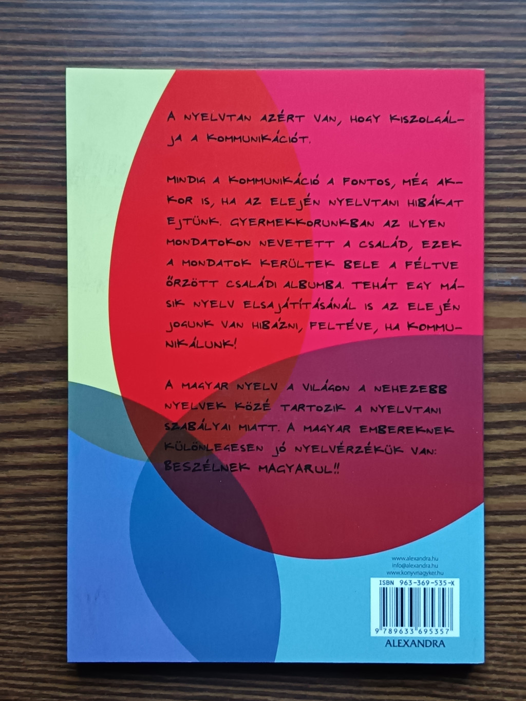 A nyelvtan azért van; hogy kiszolgálja a kommunikációt. Mindig a kommunikáció fontos, még akkor is, ha a nyelvtanulás elején néha nyelvtani hibákat ejtünk, amin aztán néha jókat derül a családunk, környezetünk. Mivel a magyar nyelv a világ egyik legnehezebb nyelve, így logikus, hogy a magyaroknak nagyon jó a nyelvérzéke. Tanuljon Ön is ebből a kommunikáció központú kötetből!