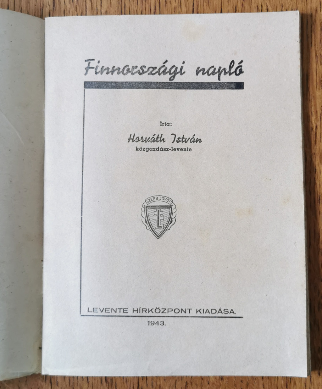 Horváth István: Finnországi napló. Bp., 1943, Levente Hírközpont (Cegléd, Garab József-ny.), 52 p. Kiadói tűzött papírborítóban.