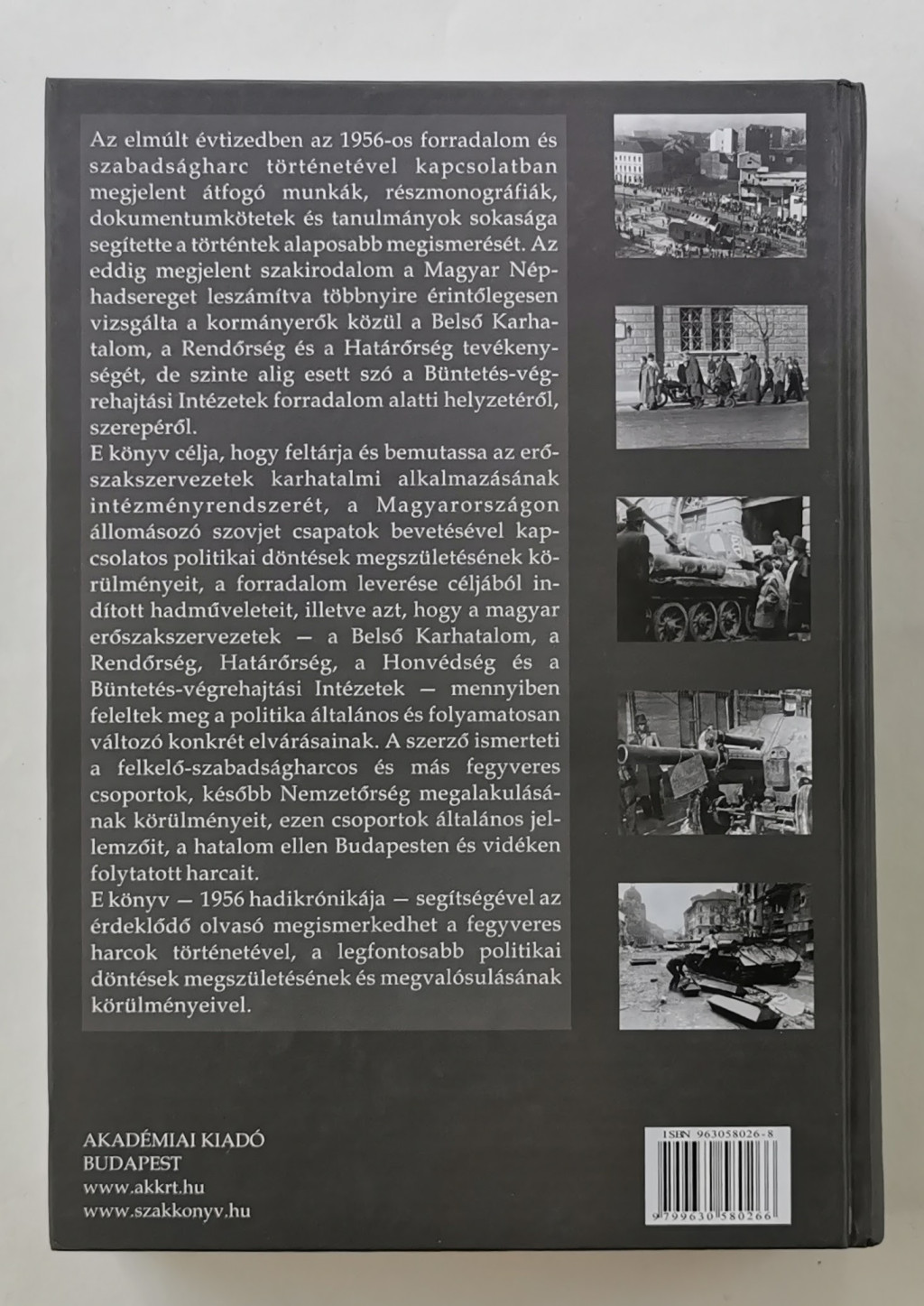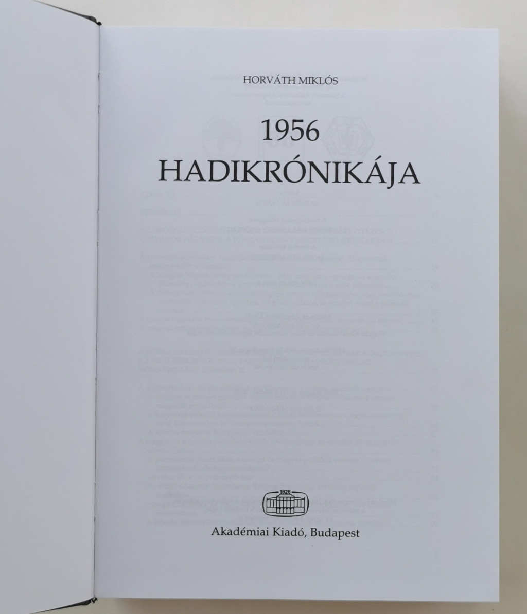 E könyv – 1956 hadikrónikája – segítségével az érdeklődő olvasó megismerkedhet a fegyveres harcok történetével, a legfontosabb politikai döntések megszületésének és megvalósulásának körülményeivel.