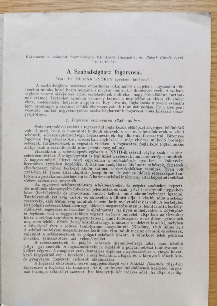 Huszár György, Dr: A szabadságharc fogorvosai