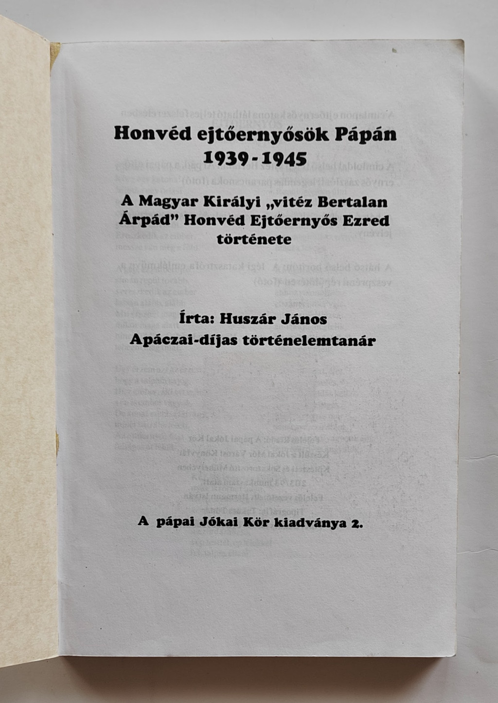 Huszár János: Honvéd ejtőernyősök Pápán 1939–1945 (Első kiadás!)