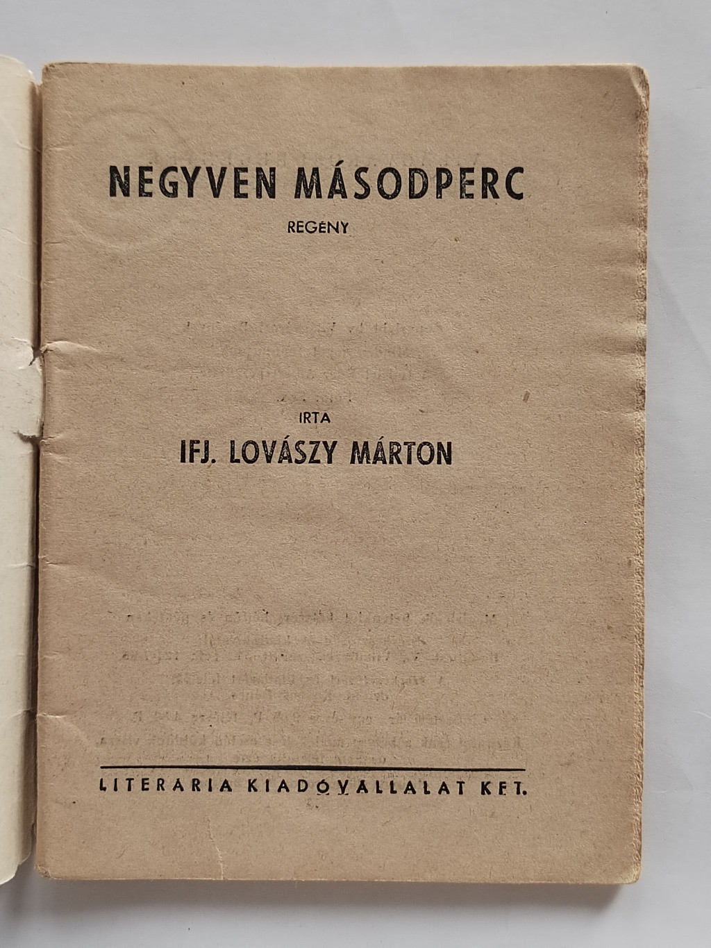 Ifj. Lovászy Márton: Negyven másodperc (Világvárosi Regények 426.)