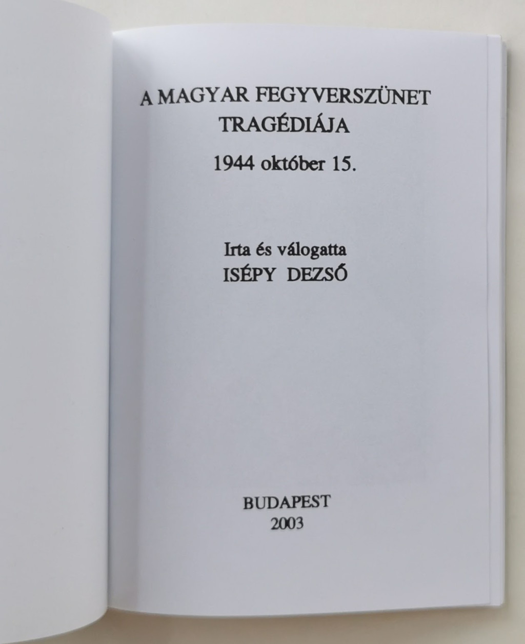 Isépy Dezső: A magyar fegyverszünet tragédiája - 1944. október 15.