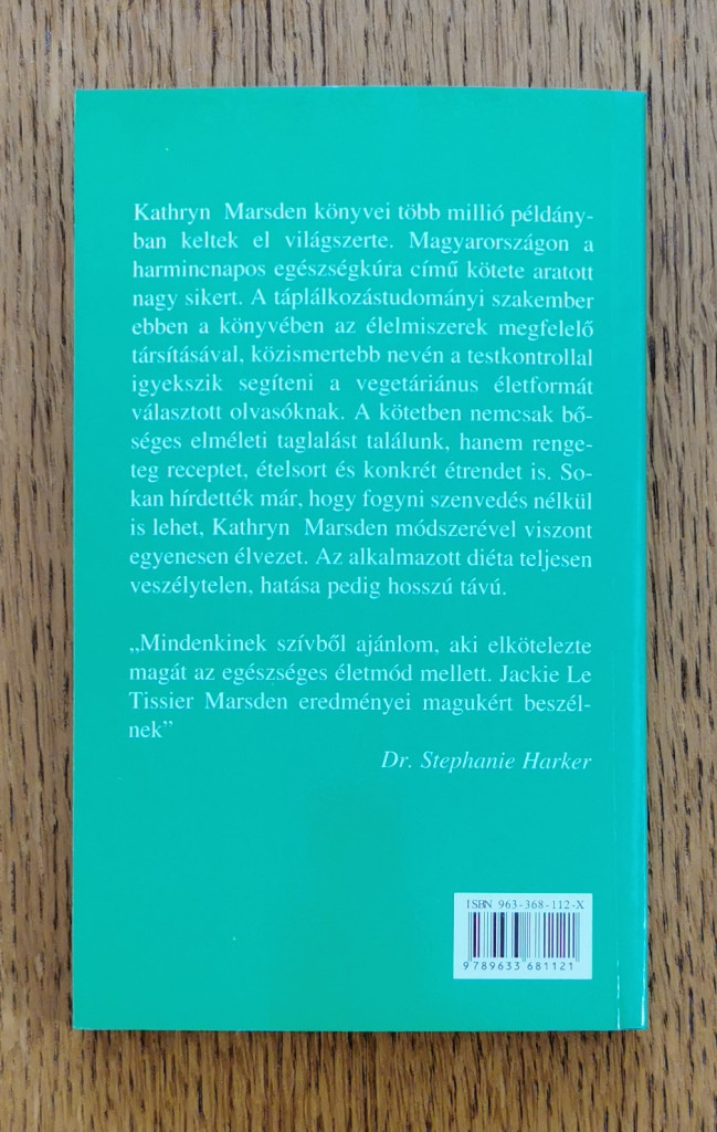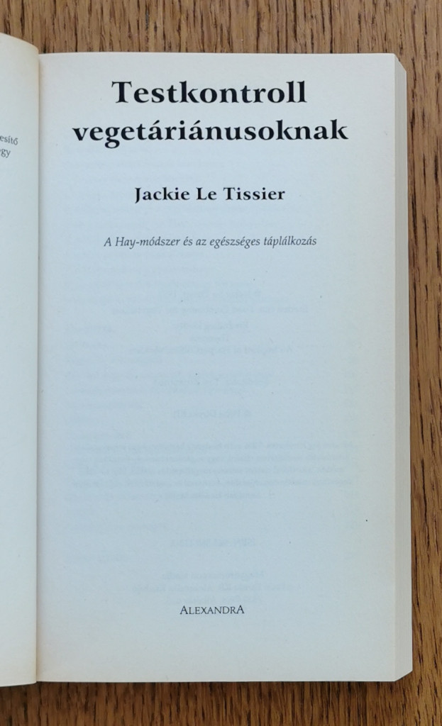 Jackie Le Tissier; a táplálkozástudományi szakember ebben a könyvében az élelmiszerek megfelelő társításával, közismertebb nevén a testkontrollal igyekszik segíteni a vegetáriánus életformát választott olvasóknak. A kötetben nemcsak bőséges elméleti taglalást találunk, hanem rengeteg receptet, ételsort és konkrét étrendet is.