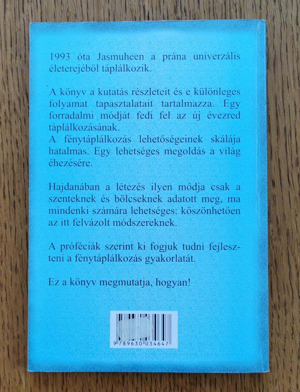 A könyv a kutatás részleteit és e különleges folyamat tapasztalatait tartalmazza. Egy forradalmi módját fedi fel az új évezred táplálkozásának. A fénytáplálkozás lehetőségeinek skálája hatalmas. Egy lehetséges megoldás a világ éhezésére.