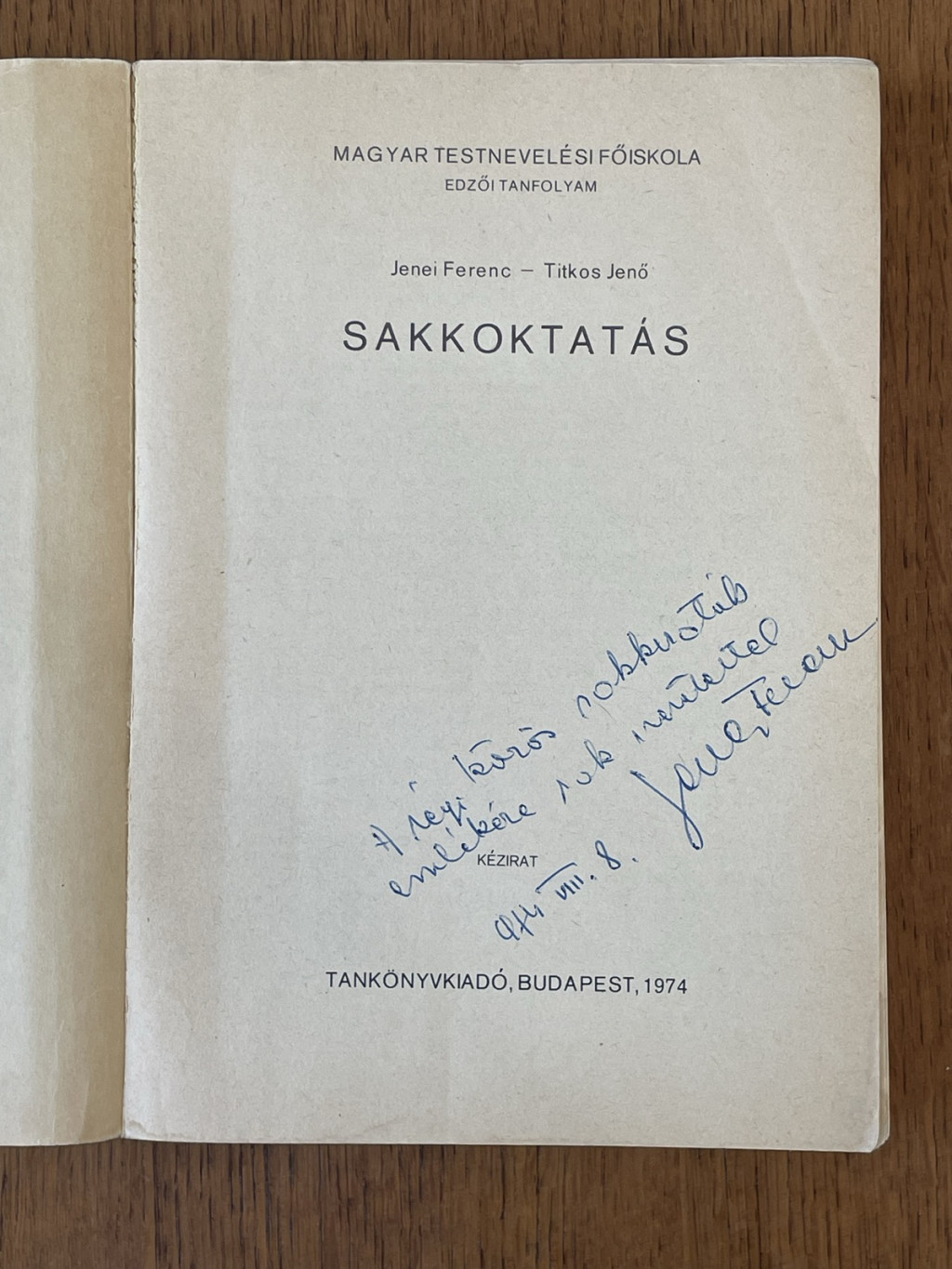 Jenei Ferenc - Titkos Jenő: Sakkoktatás (Dedikált)