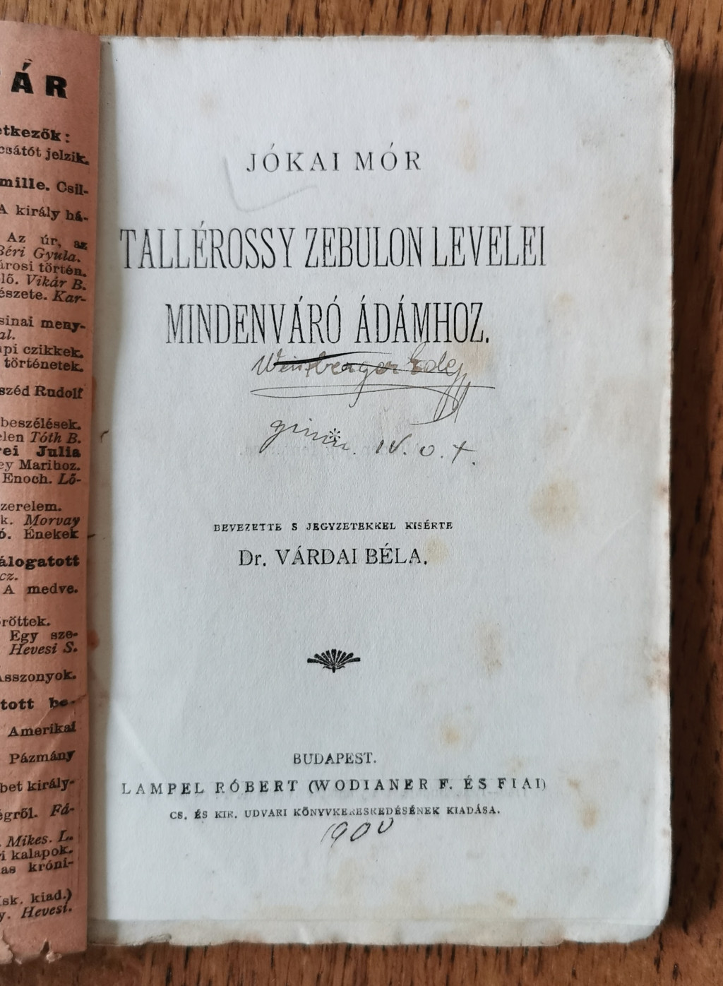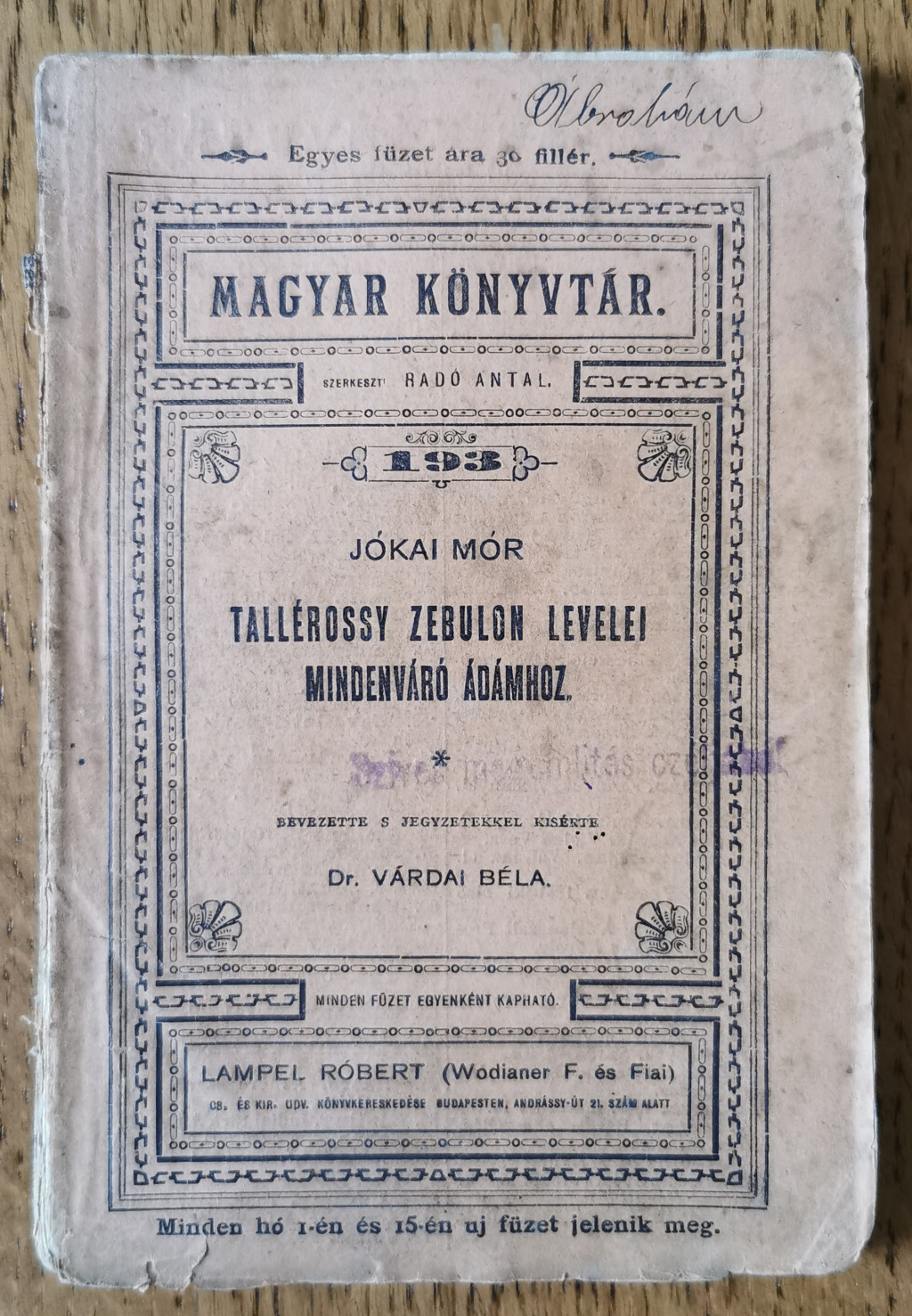 Jókai Mór: Tallérossy Zebulon levelei Mindenváró Ádámhoz (Magyar Könyvtár 193.)