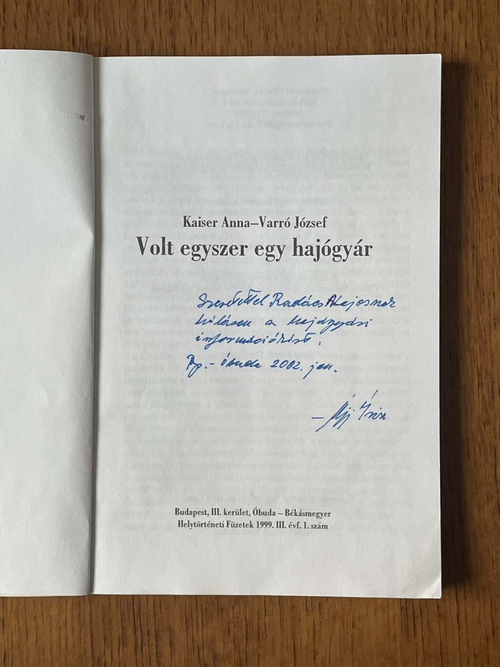 Kaiser Anna - Varró József: Volt egyszer egy hajógyár (Helytörténeti Füzetek III. évf. 1. sz.) (Dedikált)