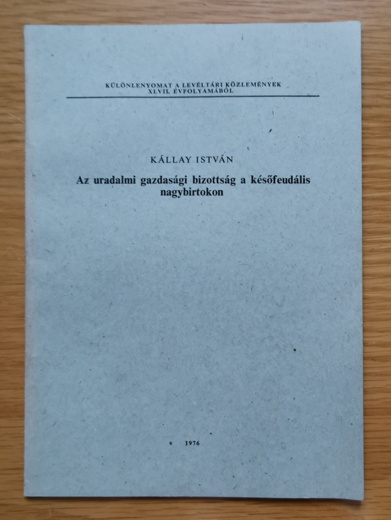 Kállay István: Az uradalmi gazdasági bizottság a későfeudális nagybirtokon