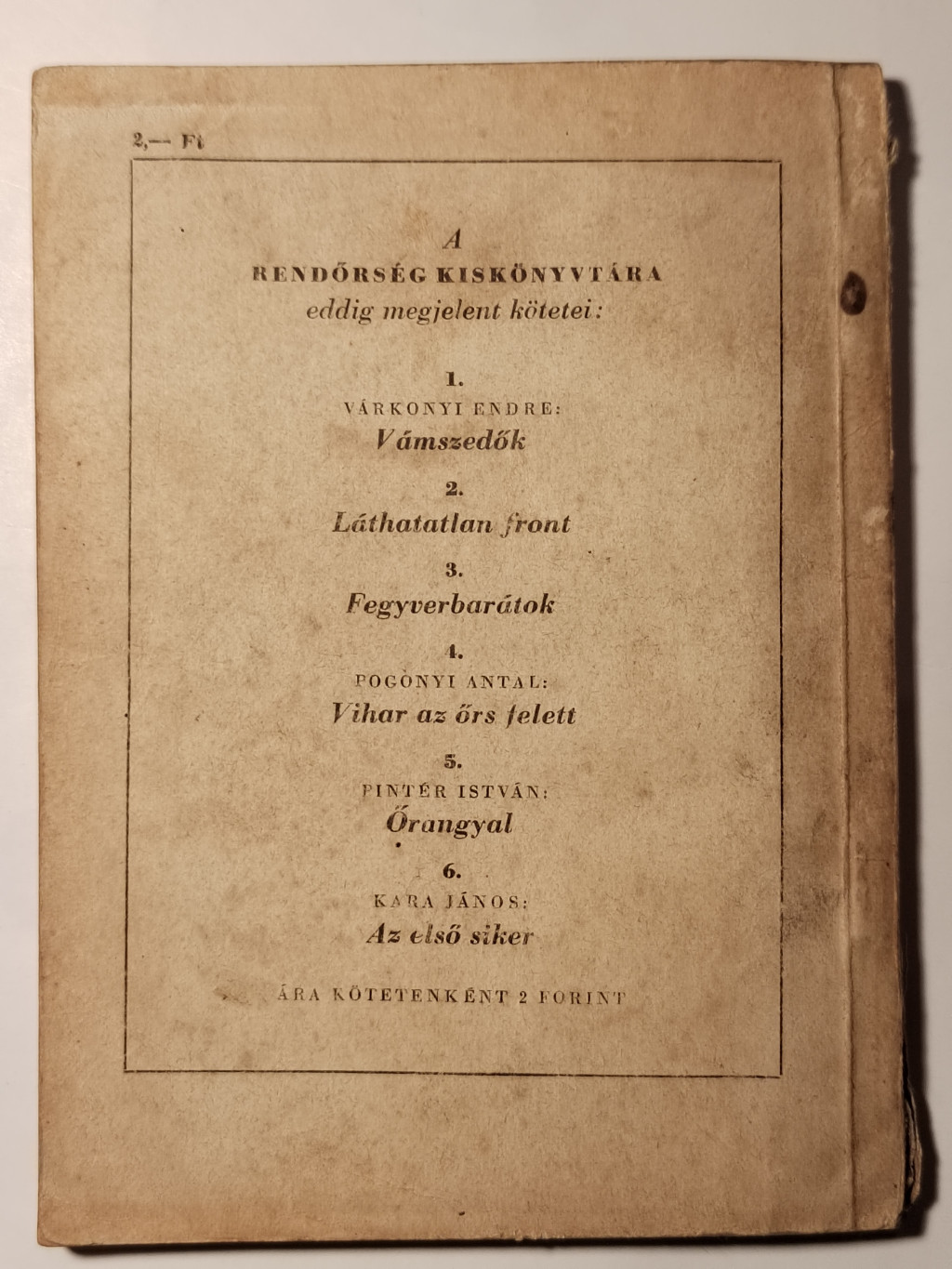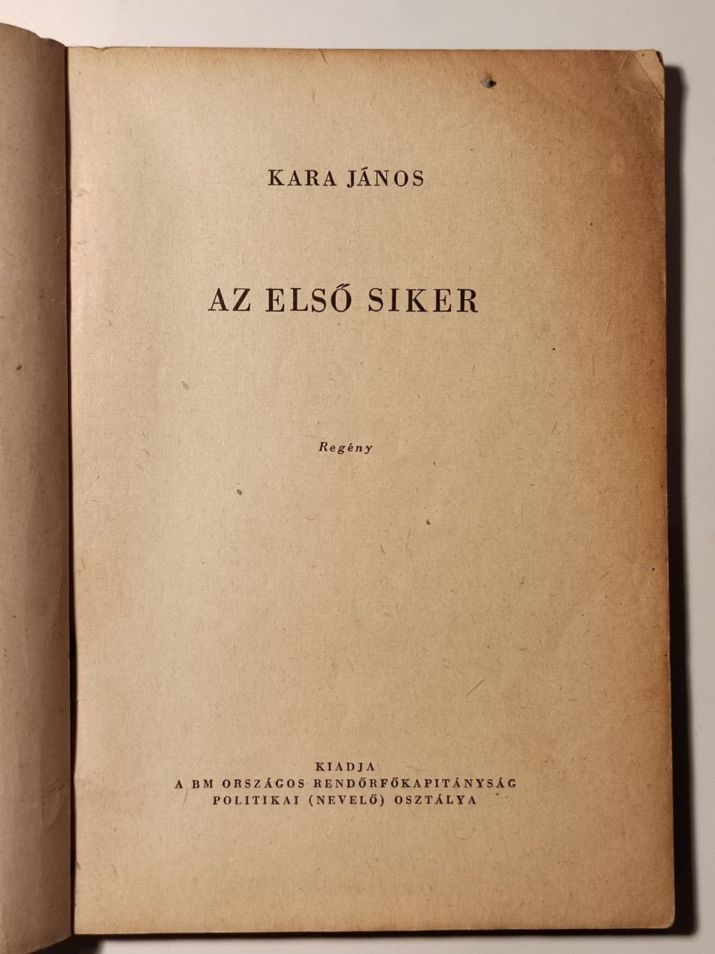 Kara János: Az első siker (Rendőrség Kiskönyvtára 1958 6. sz.)