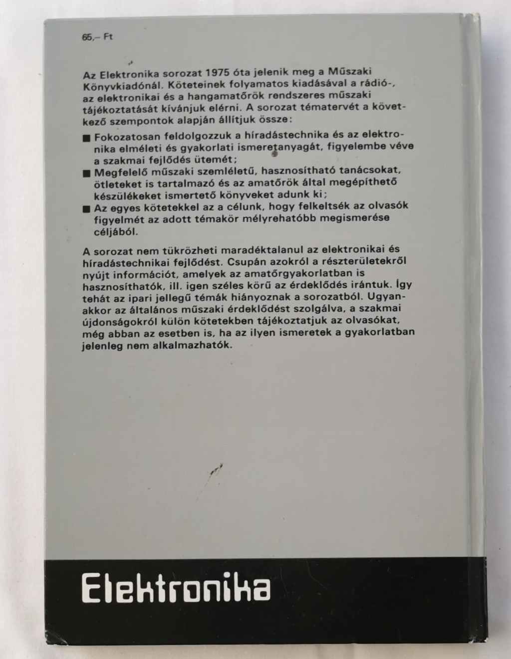 Az ELEKTRONIKA sorozat 1975 óta jelenik meg a Műszaki Könyvkiadónál. Köteteinek folyamatos kiadásával a rádió-, az elektronikai és a hangamatőrök rendszeres műszaki tájékoztatását kívánjuk elérni. A sorozat tématervét a következő szempontok alapján állítjuk össze: