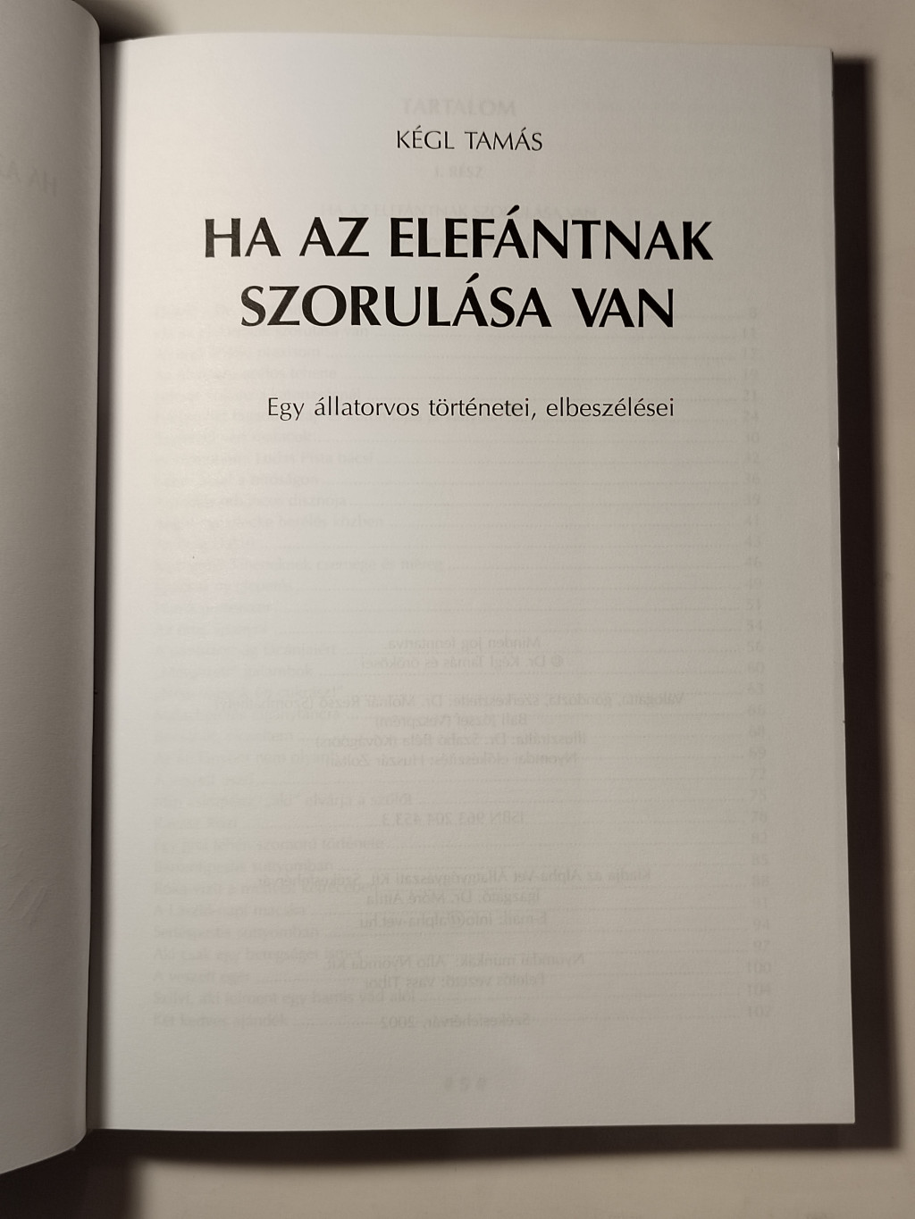 A "másik" Kégl Tamás, aki ezzel a könyvvel jelentkezik, imponáló, szikár in medias res indítású, kevés szóval nagyon sokat - a lényeget - elmondó novellákat és aforizmatikus tömörségű verseket ír. 17 állatfajról szólnak ezek a történetek, amelyeknek nagy erénye a belőlük áradó derű, esetenként humor és önirónia. Állatorvos-történeti hagyománymegőrző jelentősége is van ennek a könyvnek, mert olyan ma már kivesző (vagy kiveszett) "praktikákat" és embereket ismerhet meg általa az olvasó, mint a birkák foggal való herélése, a juhászok kópésága, stb.