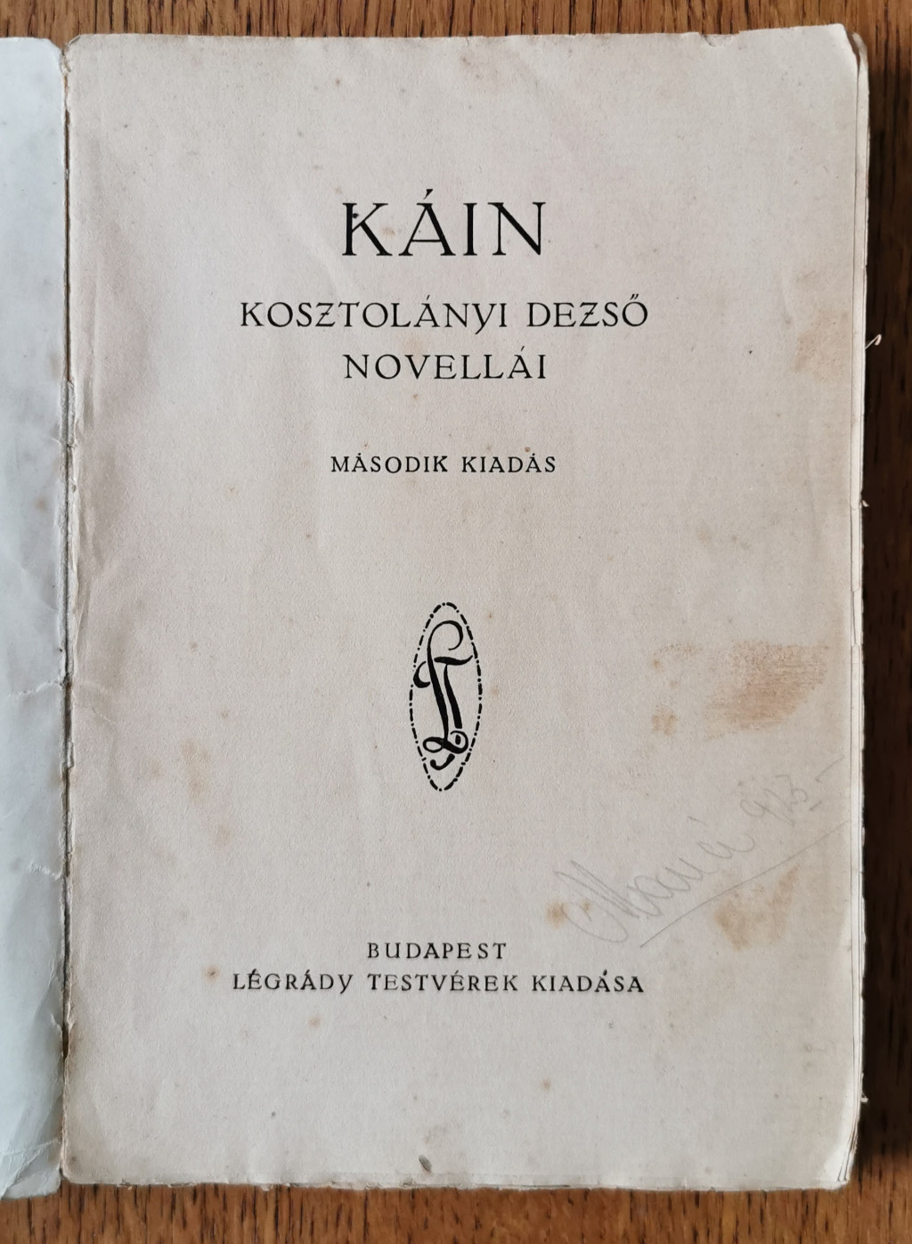 Bp. (1923.) Légrády. 139 p. Második kiadás (Kosztolányi Dezső novellái).