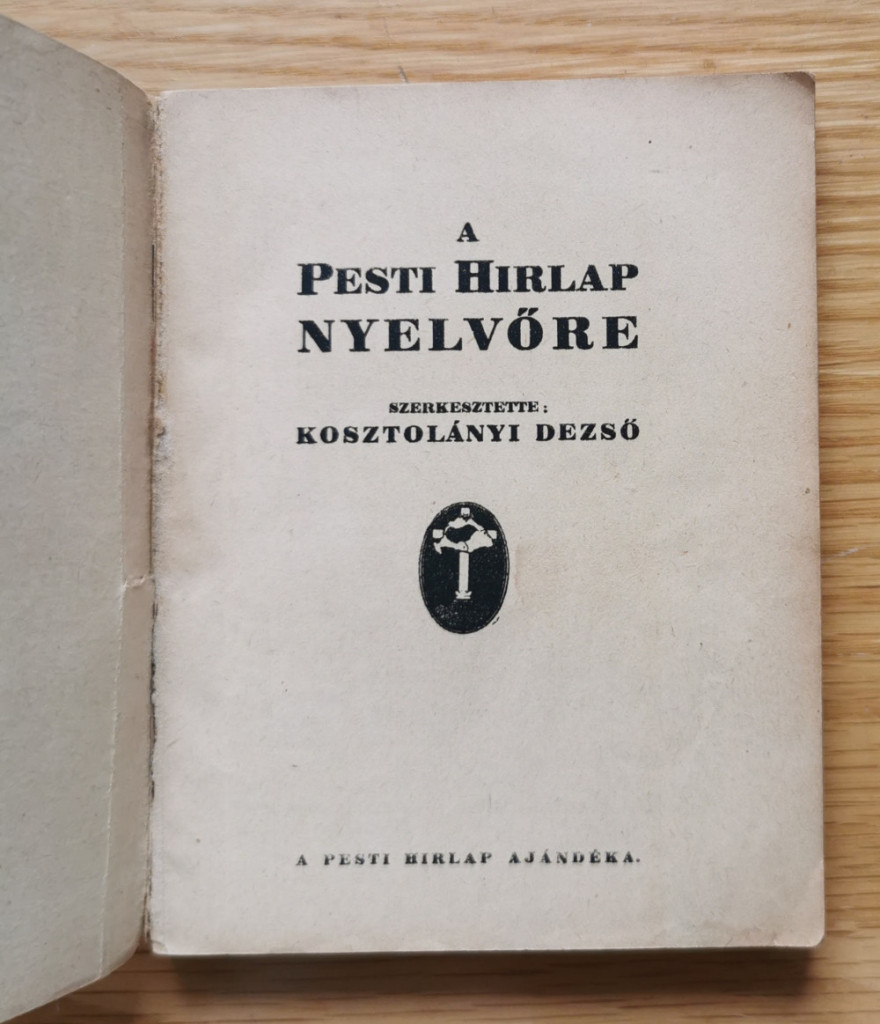 Kosztolányi Dezső (szerk.): A Pesti Hirlap Nyelvőre (Bp.), é.n. Pesti Hirlap. 224 p. Fűzve, kiadói, színes, illusztrált, keretdíszes, irredenta papírborítóban. Szép példány.