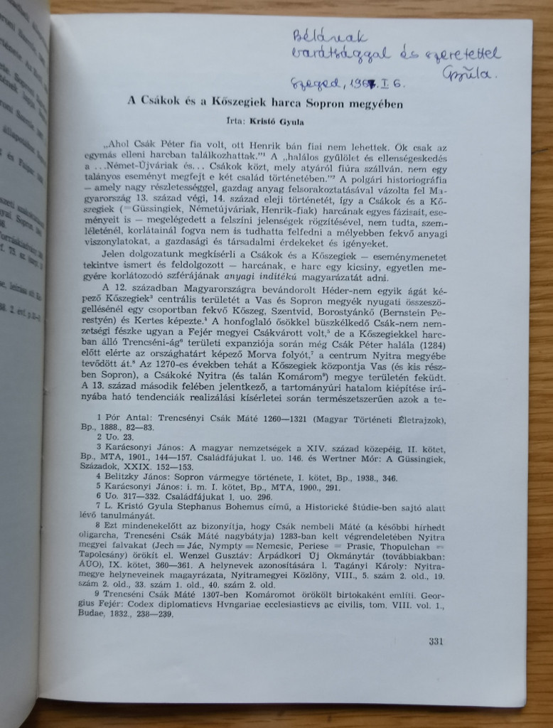 Kristó Gyula: A Csákok és a Kőszegiek harca Sopron megyében (Dedikált!)