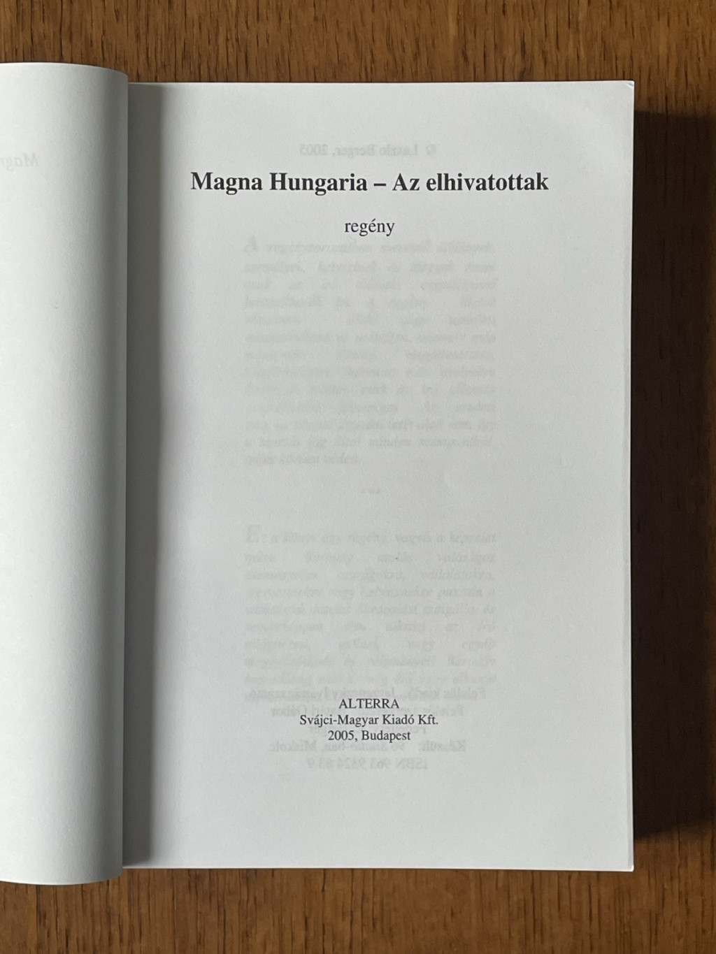 E kötet melyet kezében tart az olvasó egy a fölnőtt korosztálynak is szóló fantázia-regény. Szerzője nem kevesebbre vállalkozik, minthogy szórakoztató formában áttekintse a magyarság regéit, mondavilágát, az ezeken alapuló származástani fejtegetéseket, olykor visszapörgetve az idő kerekét akár az elsüllyedt, titokzatos Mu szigetéig is. És hogy vitakérdéseket vessen föl, sőt provokáljon a magyarság olyan sorskérdéseit illetően, mint például Trianon. Laszlo Berger nemcsak tetemes történelmi, mitológiai ismerettel rendelkezik, hanem ami a leglényegesebb, egyfajta nem mindennapi, talán felülről származó (mondjam stílszerűen, hogy táltosi) tudás is adatott neki. A regény amellett, hogy izgalmas, fordulatokban gazdag írója kitűnő pszichológiai érzékkel ábrázolja szereplői belső, lelki történéseit, reakcióit a külvilág olykor felzaklató, olykor örömteli eseményeire. Így a regényben életszerűen megírt, hús-vér karakterekkel találkozunk. Irodalomesztétikai szemszögből pedig bátran elmondható stílusa eredeti, nyelvhasználata szuggesztív.