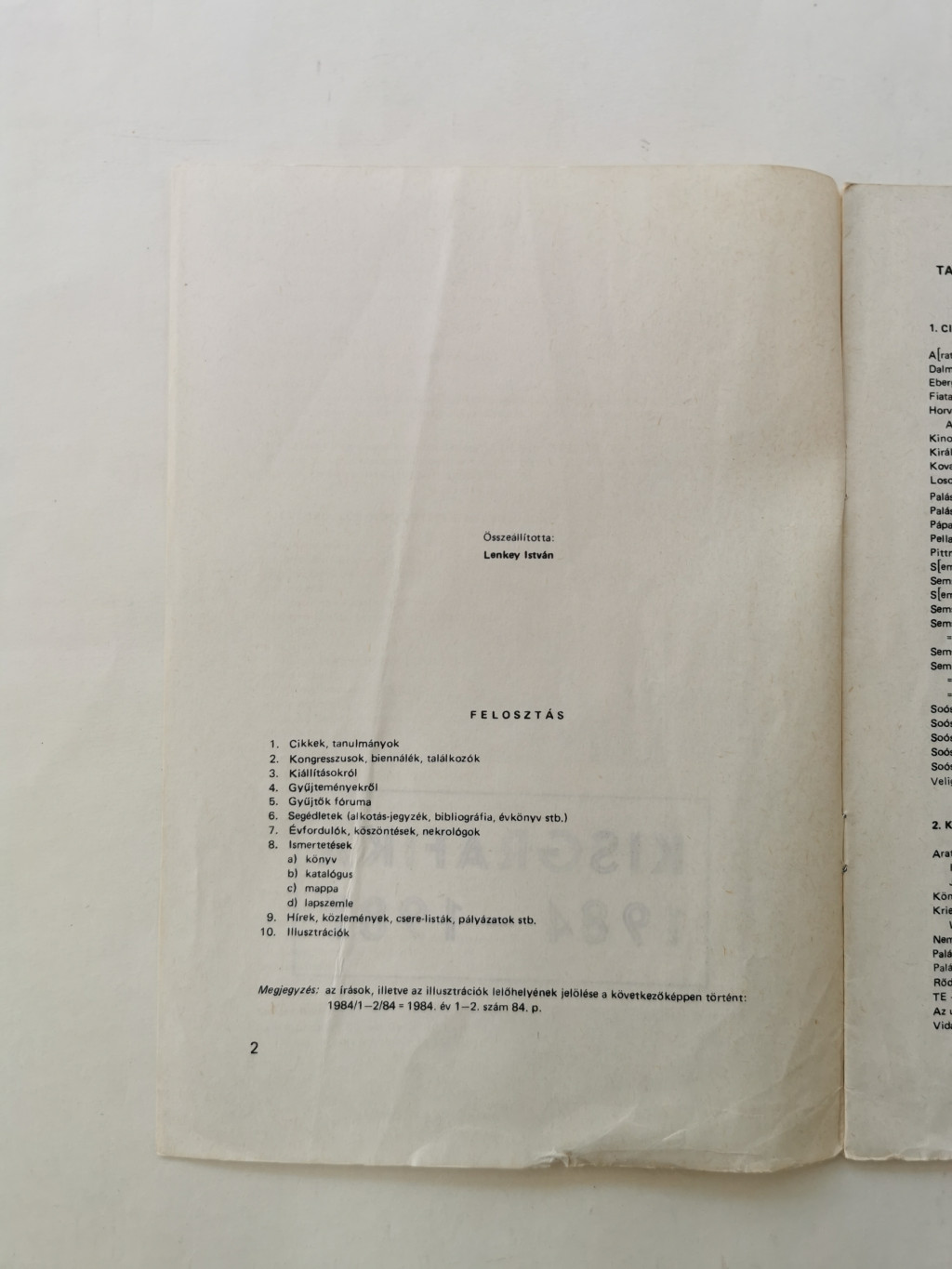 Lenkey István (szerk.): Kisgrafika 1984-1986 tartalomjegyzék