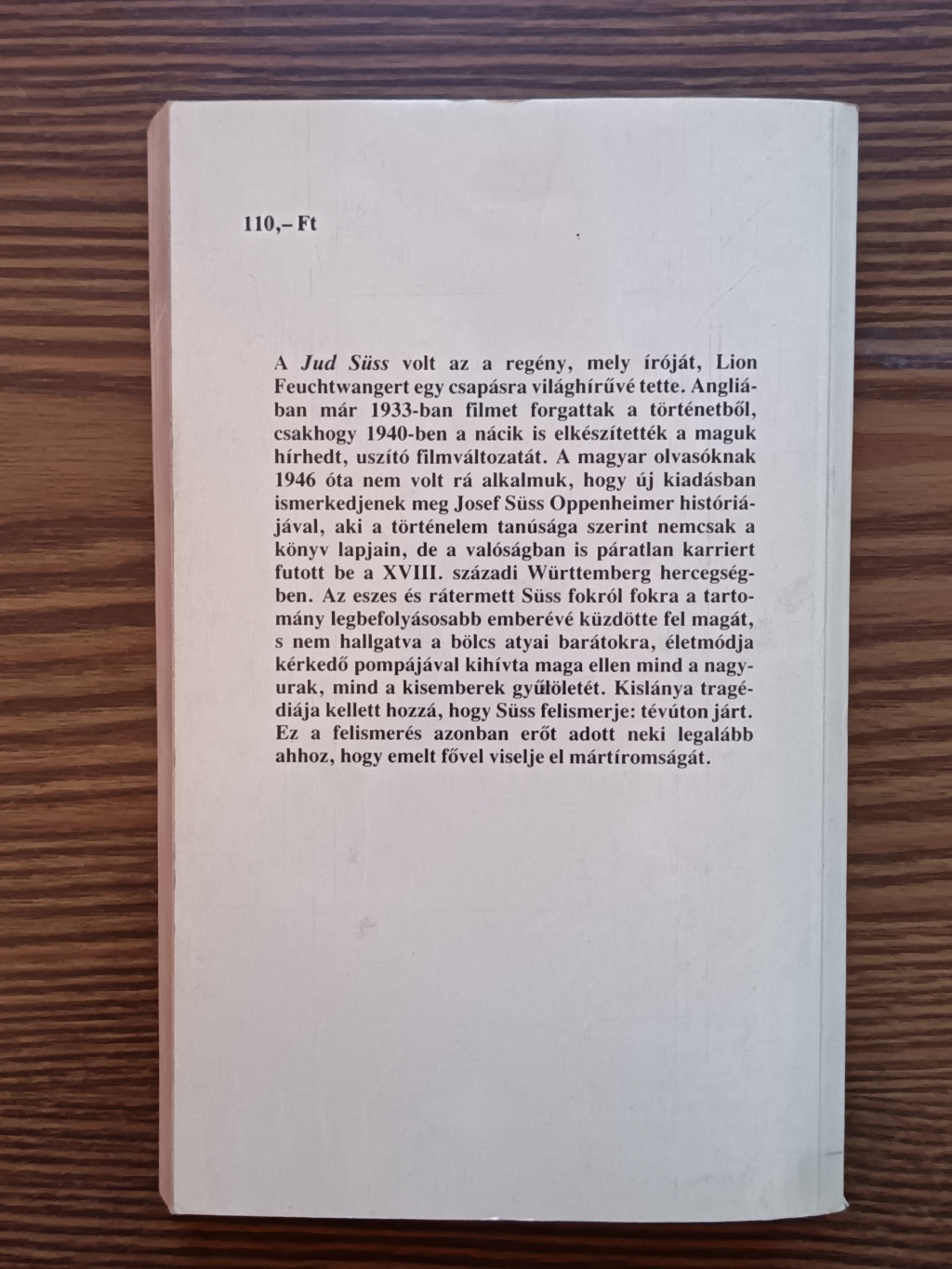 Josef Süss Oppenheimer. Gazdag. Befolyásos. Zsidó. Minden döntés tőle függ. Minden fillér az ő kezén megy keresztül. És sok ott is marad. Gyűlölik. Félik. Irigylik. És imádják. A nők. Tucatjával; százával, ezrével. A hálószobák sötétjében. Lion Feuchtwanger könyve kegyetlen, őszinte és maradandó mű. Kulcs a 18. századhoz éppúgy, mint a 20.-hoz, vagy a mához. Egy felkavaró, igaz nagyregény.