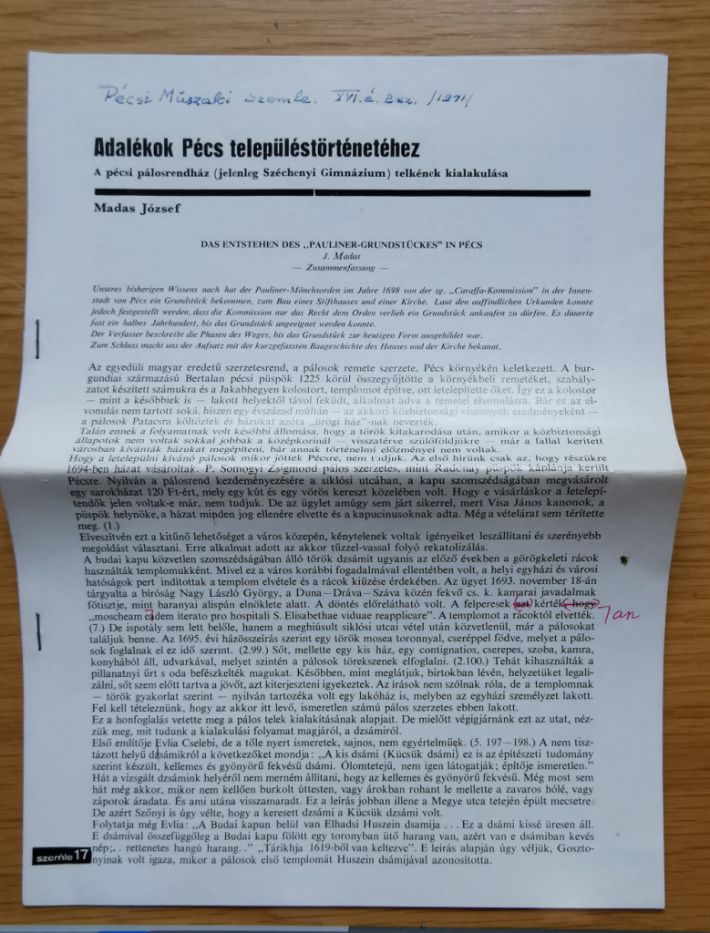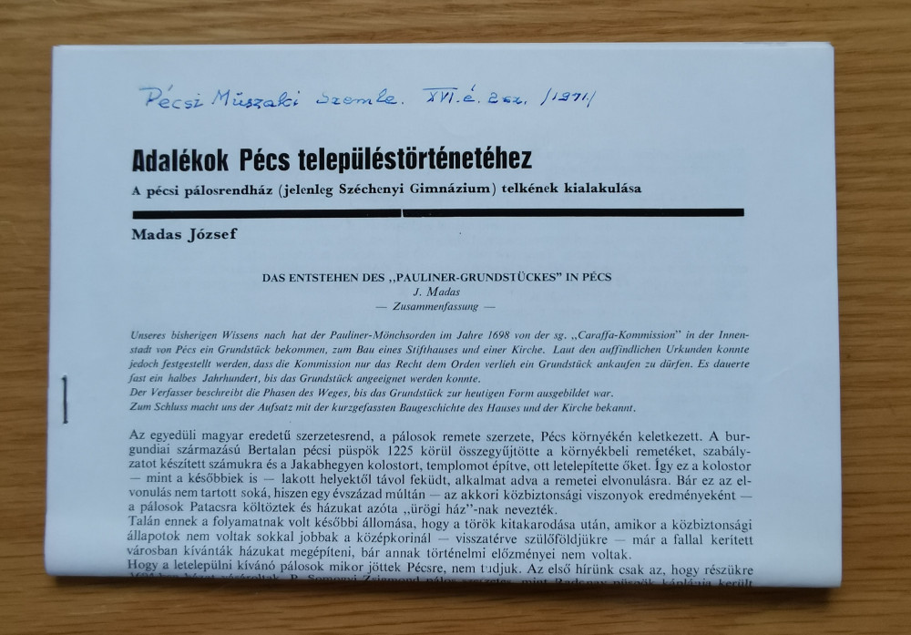 Madas József: Adalékok Pécs településtörténetéhez (Dedikált!)