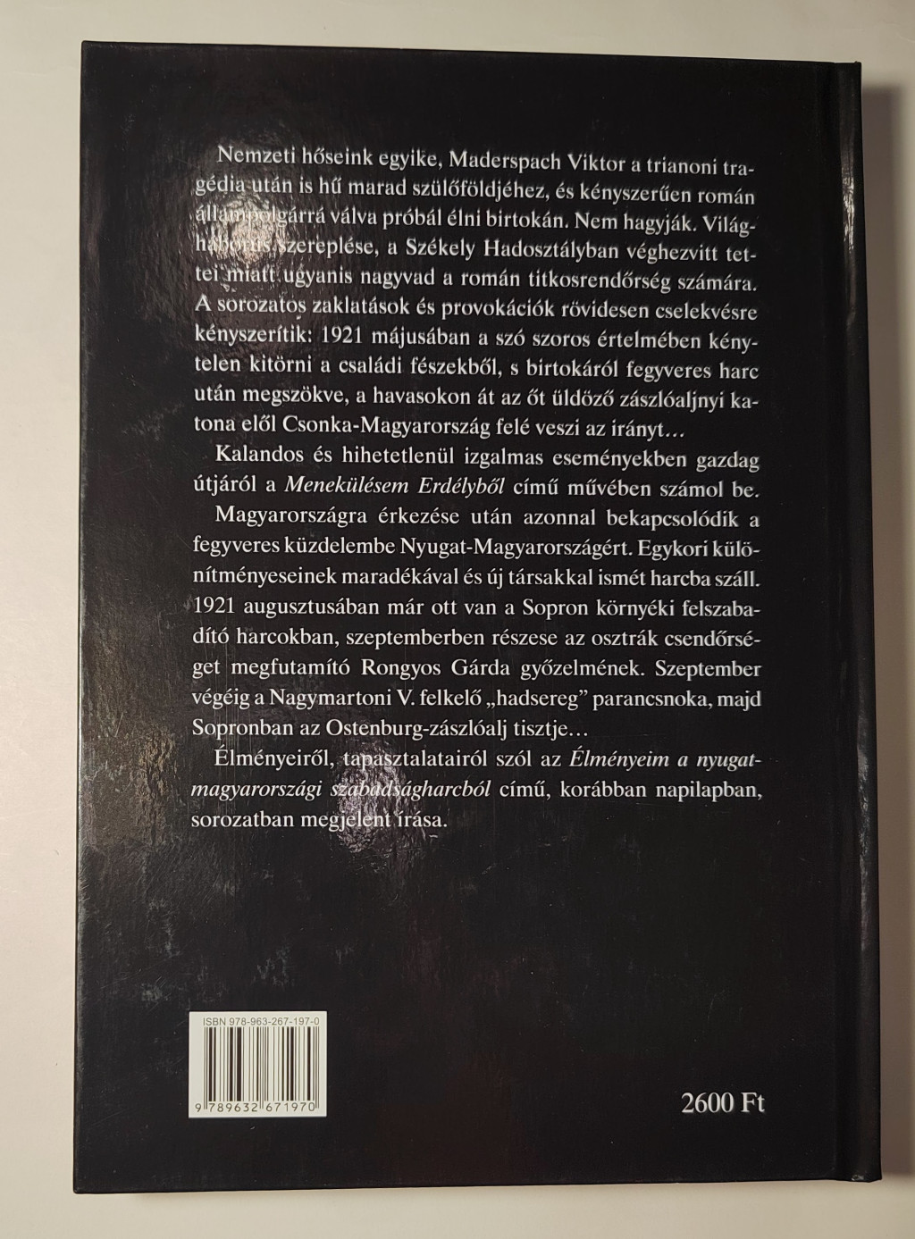 Nemzeti hőseink egyike, Maderspach Viktor a trianoni tragédia után is hű marad szülőföldjéhez, és kényszerűen román állampolgárrá válva próbál élni birtokán. Nem hagyják. Világháborús szereplése, a Székely Hadosztályban véghezvitt tettei miatt ugyanis nagy vad a román titkosrendőrség számára. A sorozatos zaklatások és provokációk rövidesen cselekvésre kényszerítik: 1921 májusában a szó szoros értelmében kénytelen kitörni a családi fészekből, s birtokáról fegyveres harc után megszökve, a havasokon át az őt üldöző zászlóaljnyi katona elől Csonka-Magyarország felé veszi az irányt…