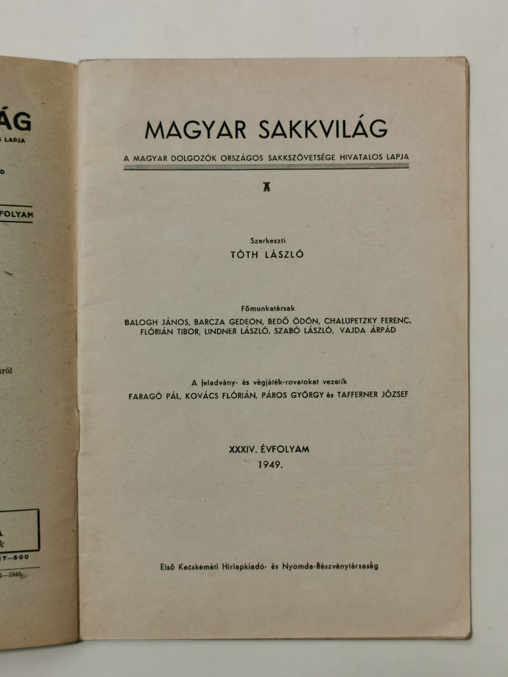 Magyar Sakkvilág XXXIV. évf. 12. sz. - 1949. december