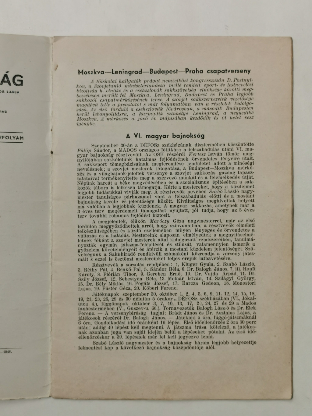 Magyar Sakkvilág XXXV. évf. 10. sz. - 1950. október