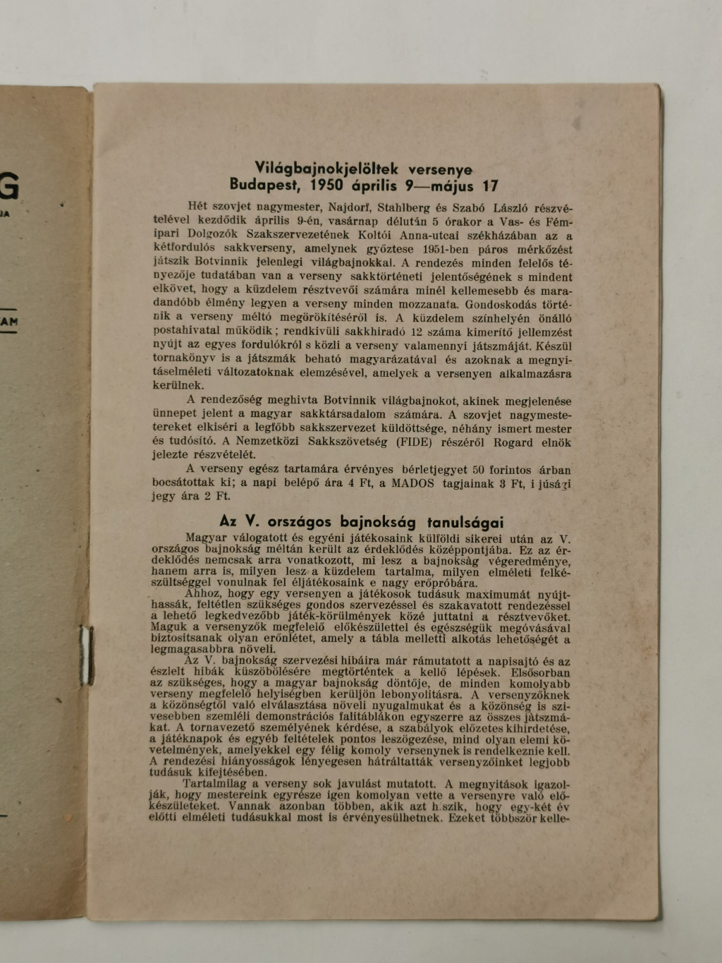 Magyar Sakkvilág XXXV. évf. 4. sz. - 1950. április