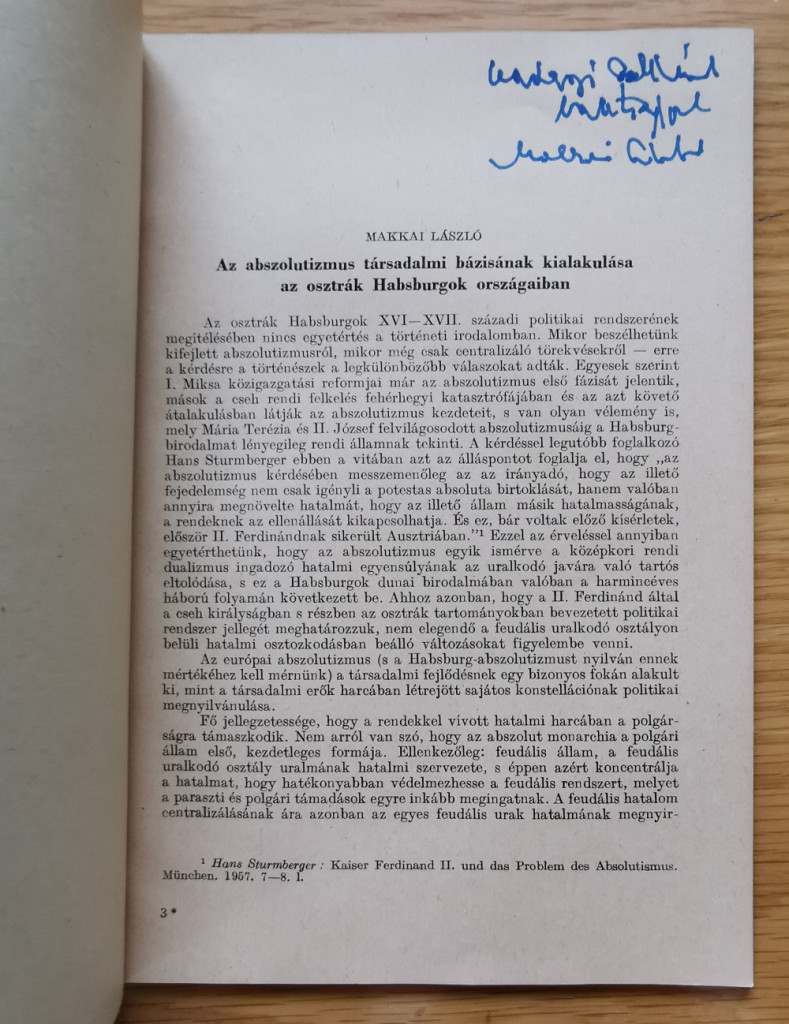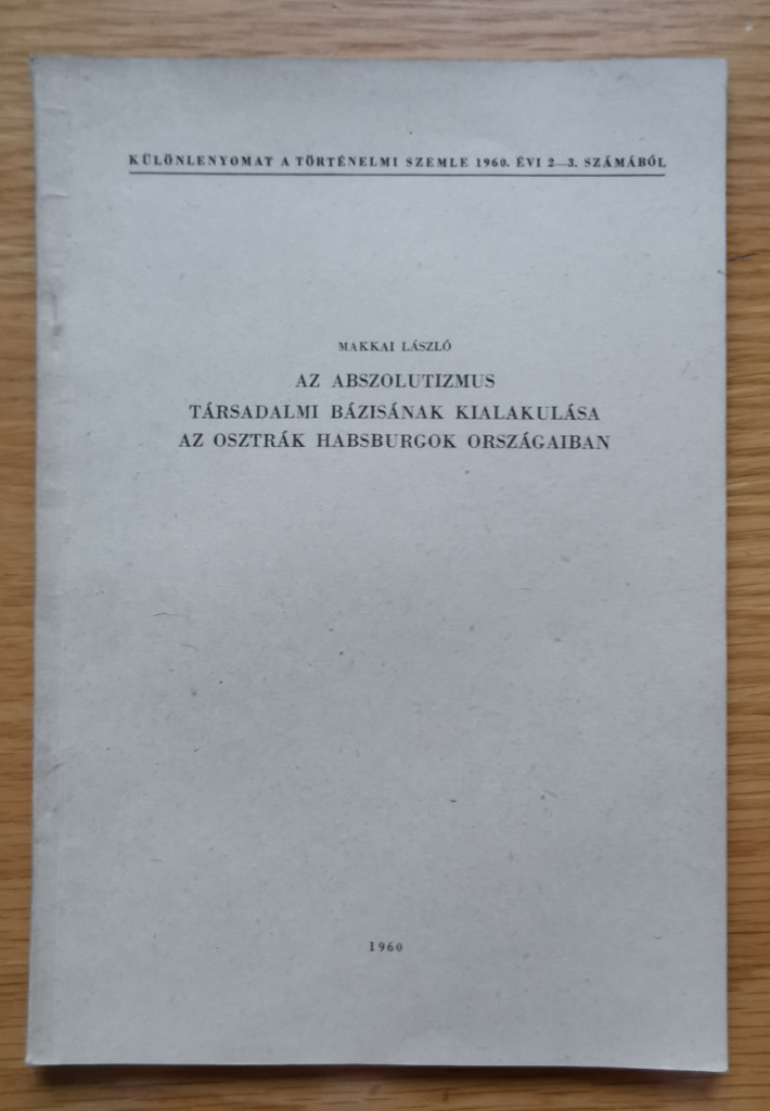 Makkai László: Az abszolutizmus társadalmi bázisának kialakulása az osztrák Habsburgok országaiban (Dedikált!)
