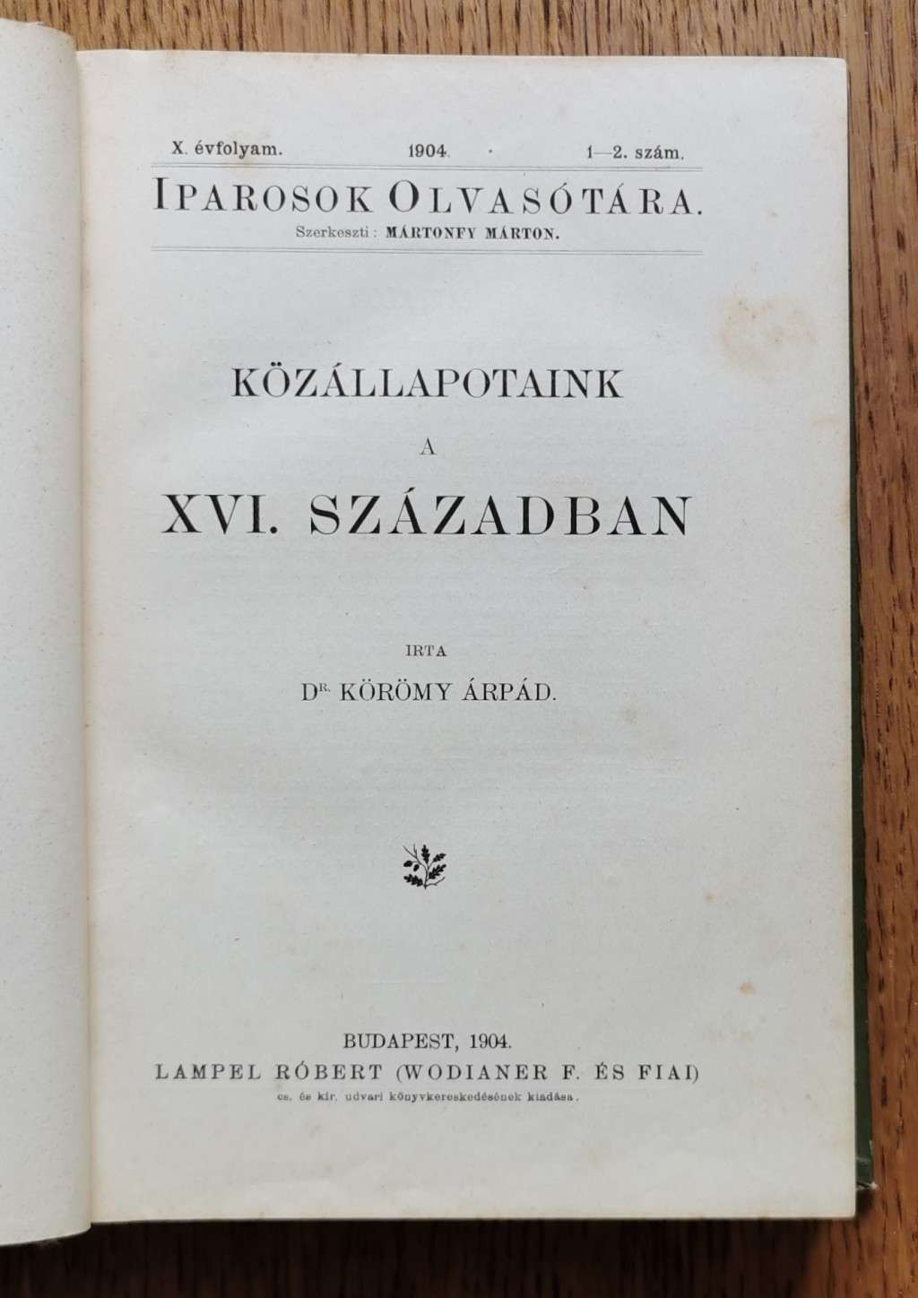 Mártonfy Márton (szerk.): Iparosok olvasótára X. évfolyam I-X. füzet