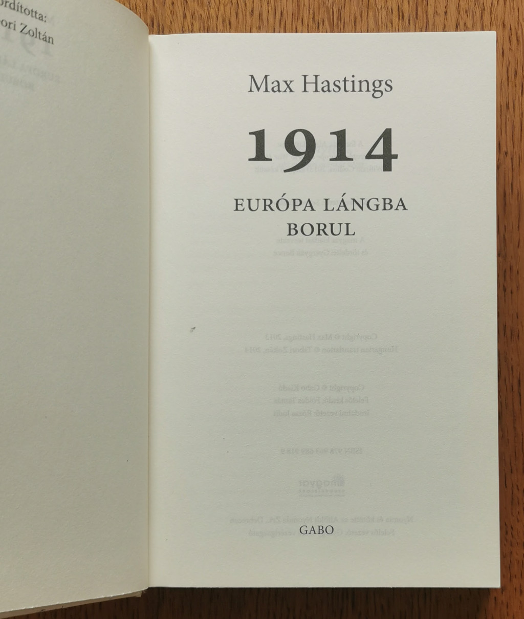 A könyv hatalmas körképben mutatja be, hogy mi történt Európával 1914-ben, mégpedig Max Hastings megszokott alul- és felülnézetet elegyítő montázstechnikájával, amellyel államférfiak és tábornokok, háziasszonyok és közkatonák hét országot felölelő sokaságát szólaltatja meg. Mítoszokat helyez új megvilágításba, és vitákra ingerlő, meglepő megállapításokat tesz. Az a tengernyi olvasó, akit magával ragadott a szerző legutóbbi nemzetközi sikerkönyve, a Fegyverben a világ, ebben a könyvben sem fog csalódni.
