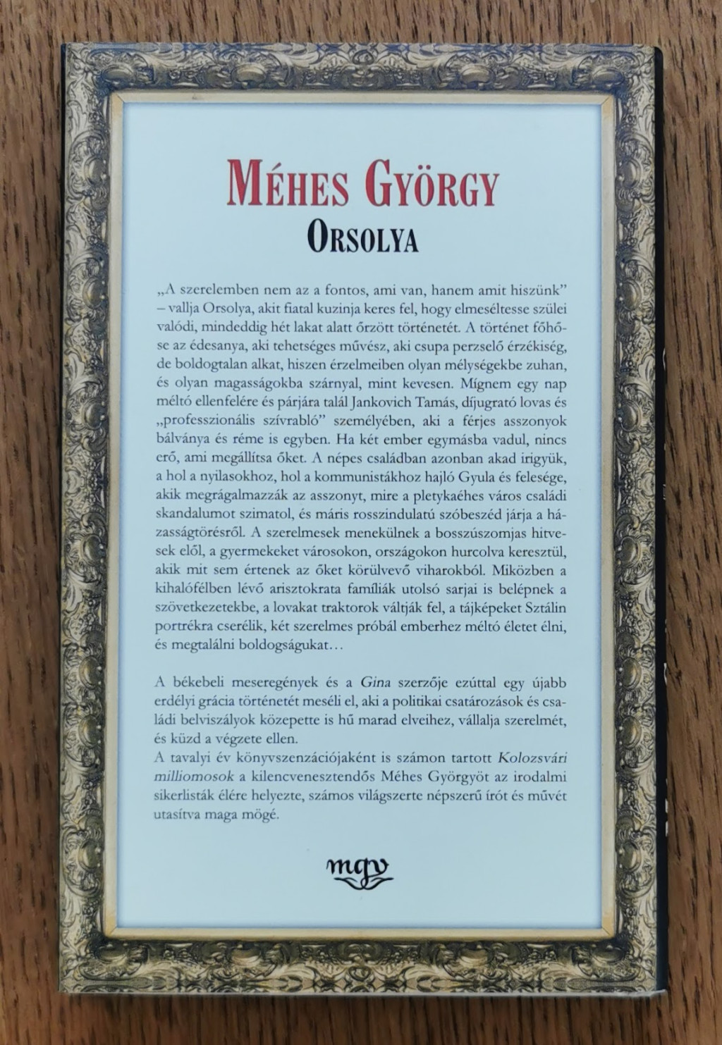 A békebeli meseregények és a Gina szerzője ezúttal egy újabb erdélyi grácia történetét meséli el, aki a politikai csatározások és családi belviszályok közepette is hű marad elveihez, vállalja szerelmét, és küzd a végzete ellen.