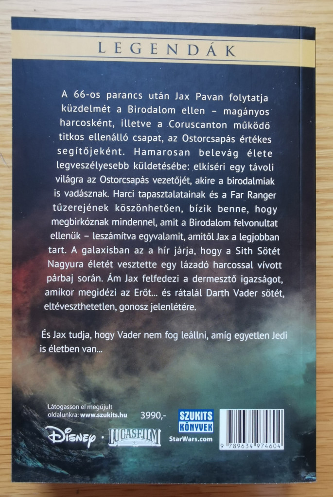 A 66-os parancs után Jax Pavan folytatja küzdelmét a Birodalom ellen – magányos harcosként; illetve a Coruscanton működő titkos ellenálló csapat, az Ostorcsapás értékes segítőjeként. Hamarosan belevág élete legveszélyesebb küldetésébe: elkíséri egy távoli világra az Ostorcsapás vezetőjét, akire a birodalmiak is vadásznak. Harci tapasztalatainak és a Far Ranger tűzerejének köszönhetően, bízik benne, hogy megbirkóznak mindennel, amit a Birodalom felvonultat ellenük – leszámítva egyvalamit, amitől Jax a legjobban tart. A galaxisban az a hír járja, hogy a Sith Sötét Nagyura életét vesztette egy lázadó harcossal vívott párbaj során. Ám Jax felfedezi a dermesztő igazságot, amikor megidézi az Erőt... és rátalál Darth Vader sötét, eltéveszthetetlen, gonosz jelenlétére.