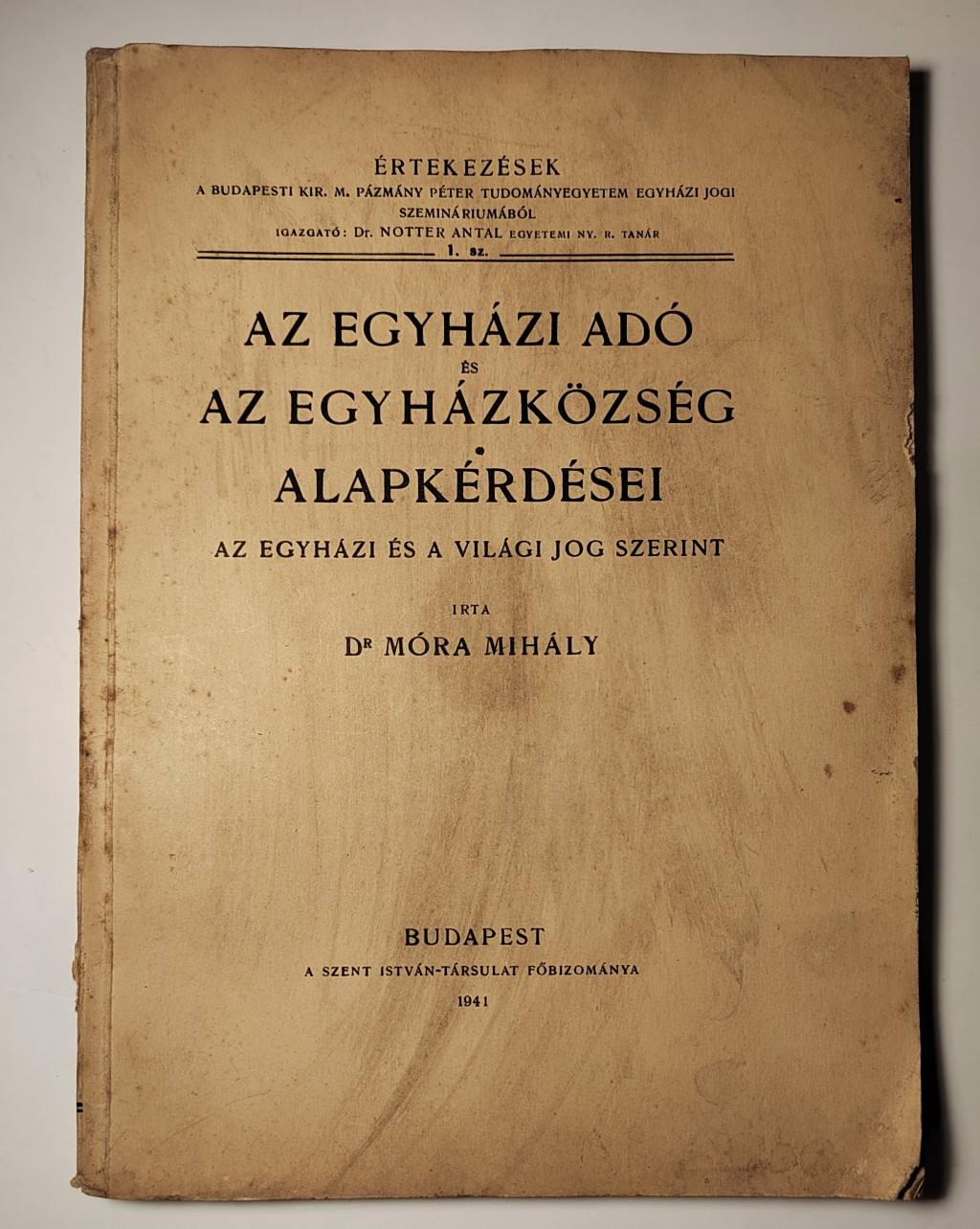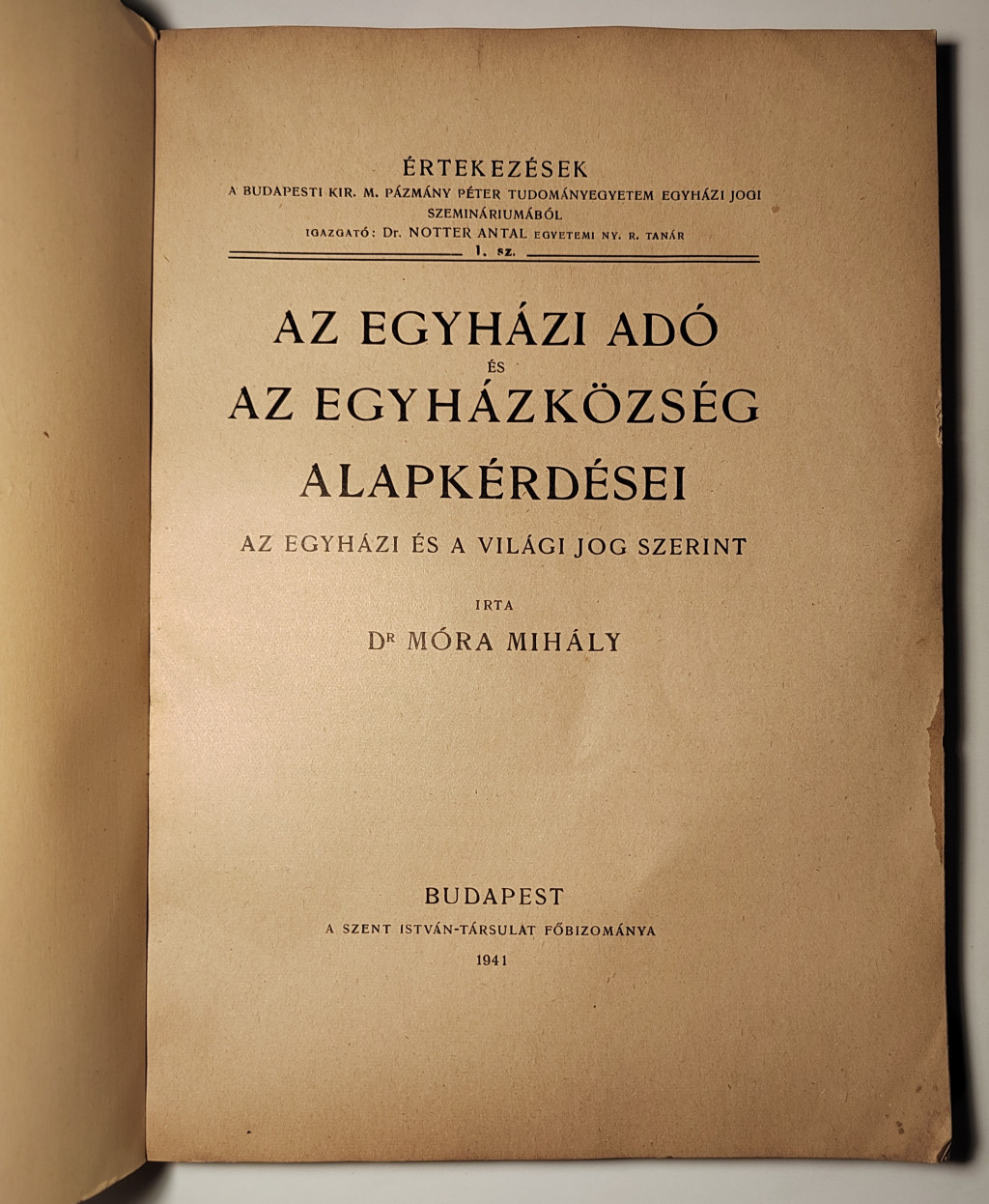 Móra Mihály, Dr.: Az egyházi adó és az egyházközség alapkérdései az egyházi és a világi jog szerint