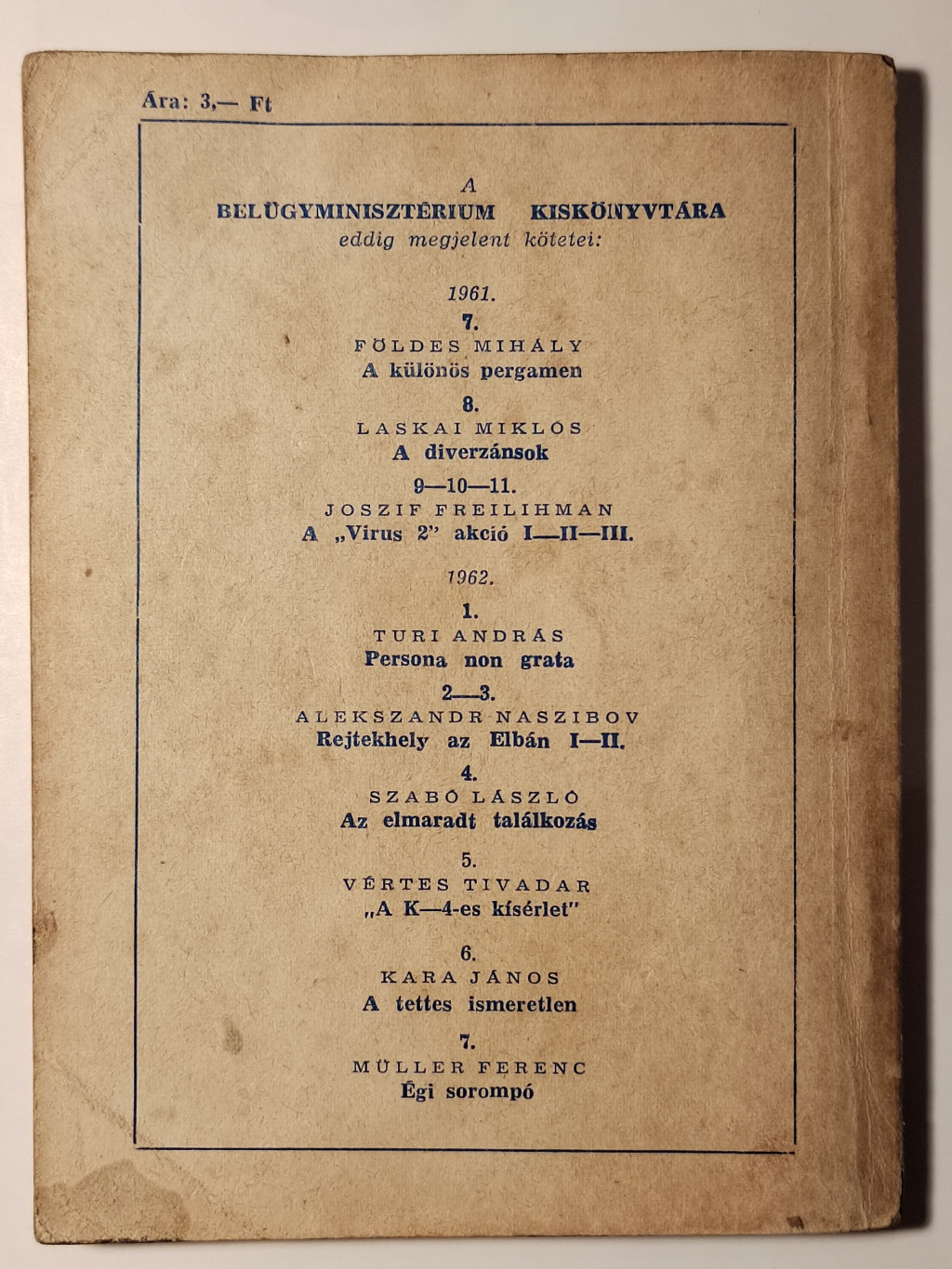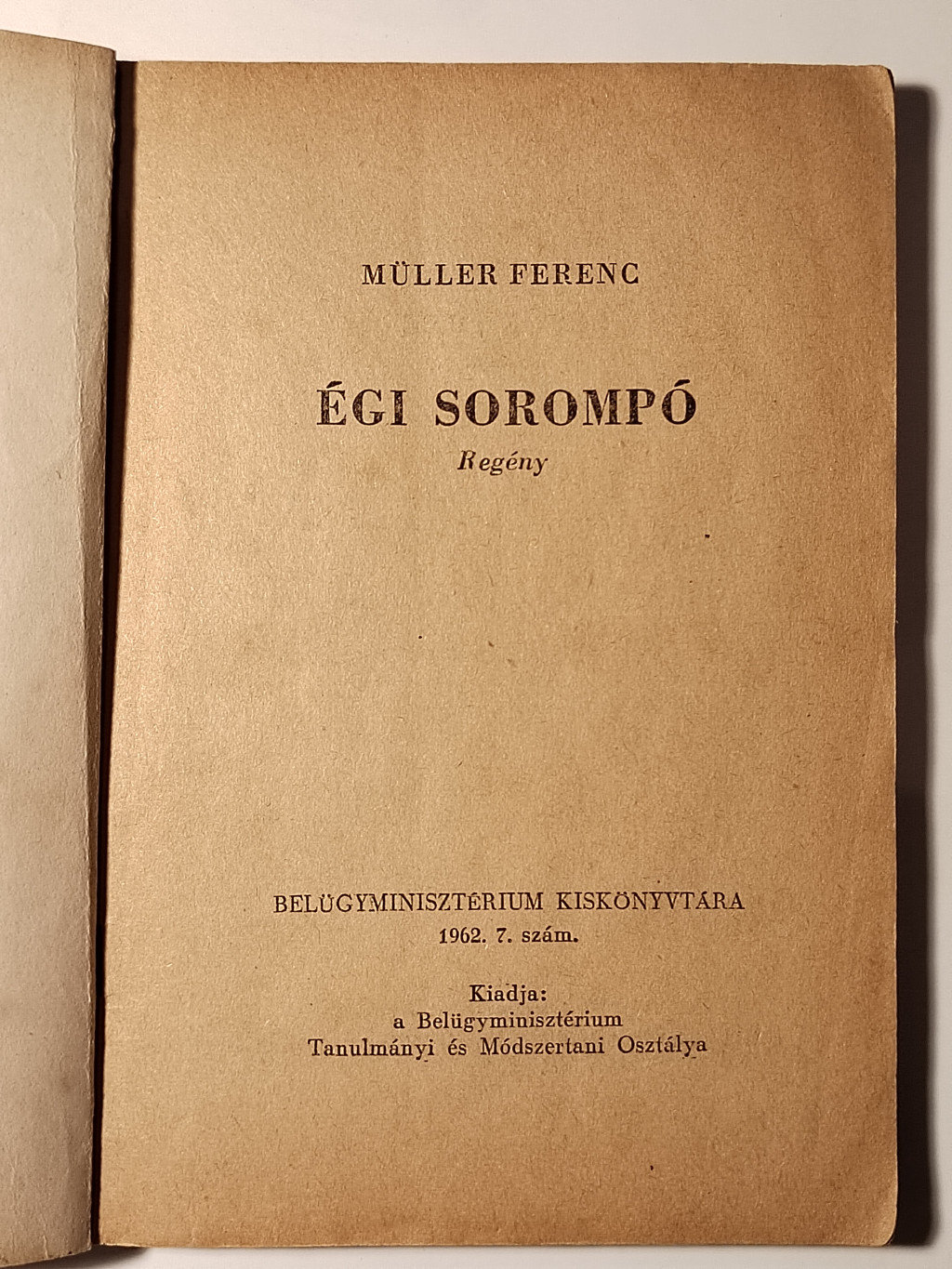 Müller Ferenc: Égi sorompó (Belügyminisztérium Kiskönyvtára 1962 7. sz.)