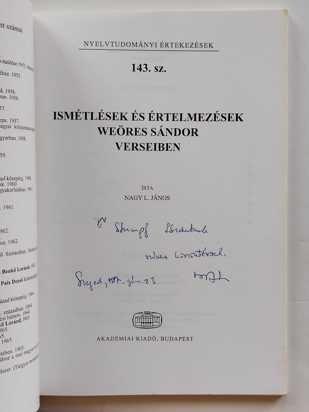 Nagy L. János: Ismétlések és értelmezések Weöres Sándor verseiben (Dedikált)
